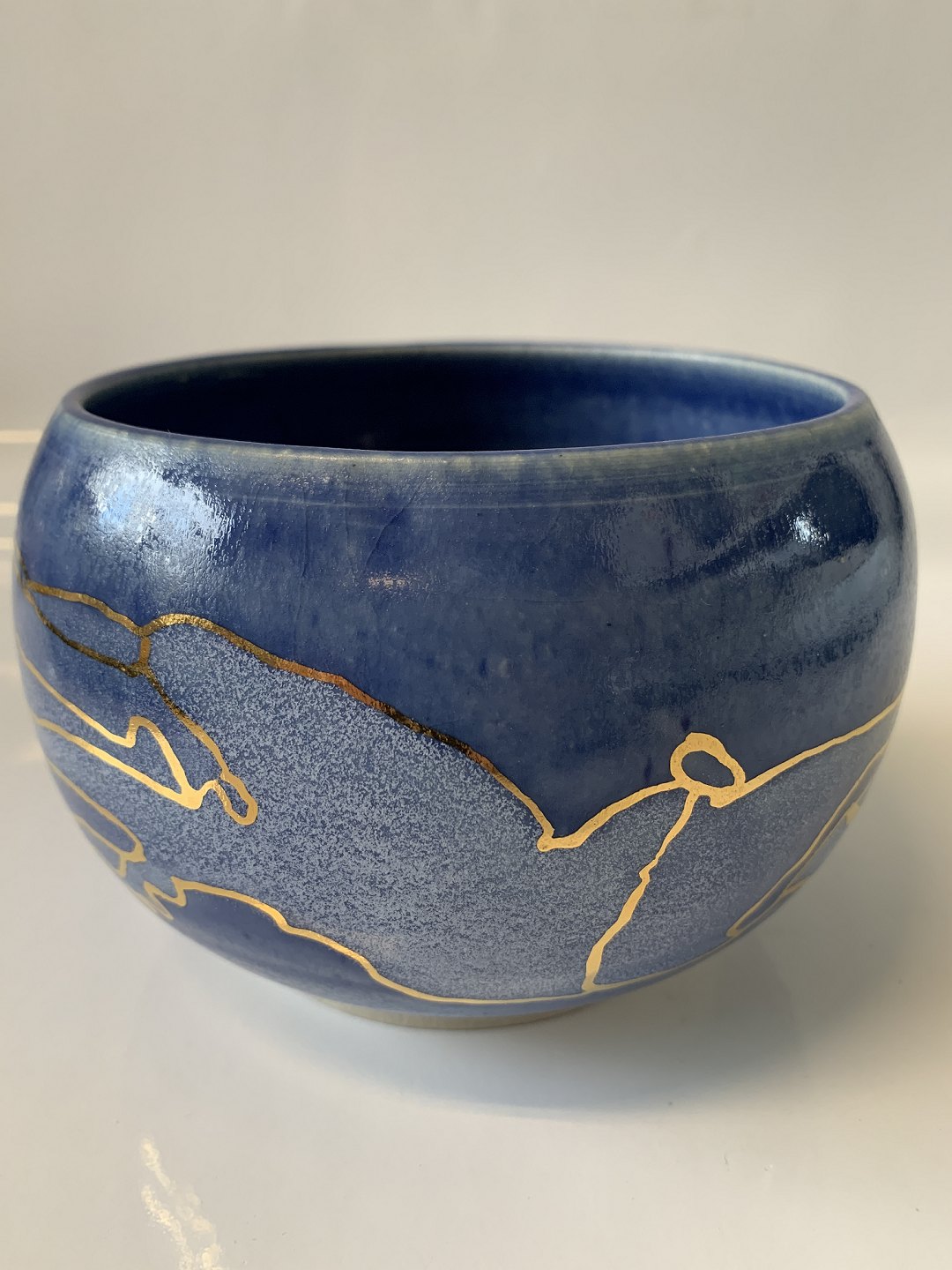 To-tonet lavendelblå Skål med guld detaljer fra Sylvest Keramik.