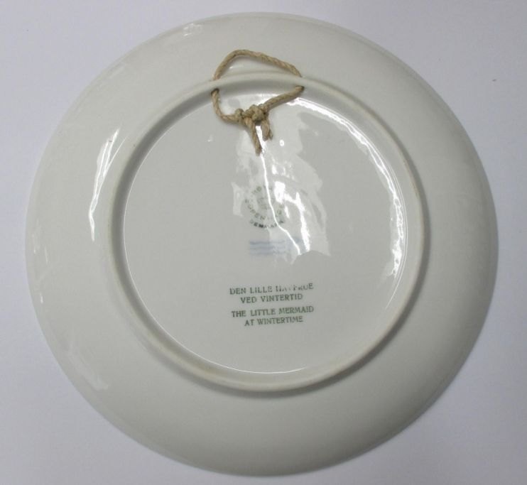 Royal Copenhagen juleplatte, 1962, København, Danmark. Blå malet. Dekoreret med Den lille Havfrue ved Vintertid, København. Dia.: 18,5 cm.  1. Sortering.  2 på lager.
