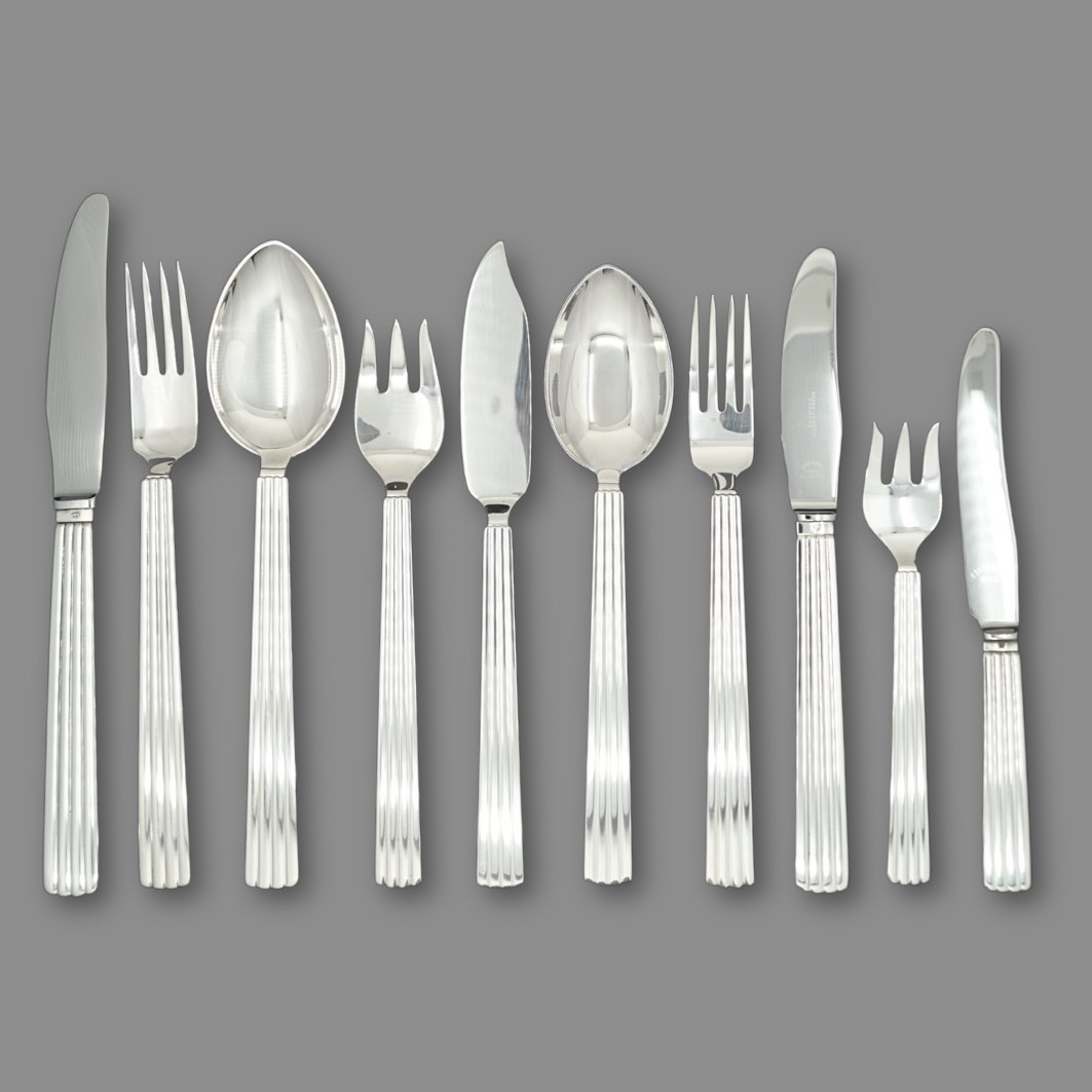 Bestik af sterling sølv til 6 personer. I alt 71 dele,