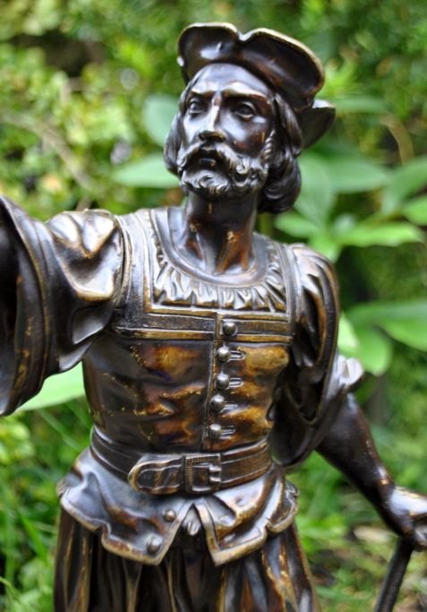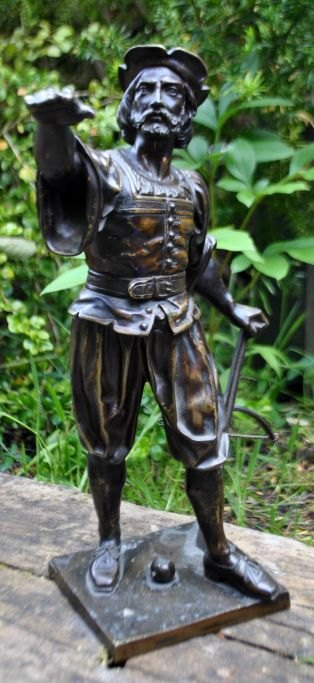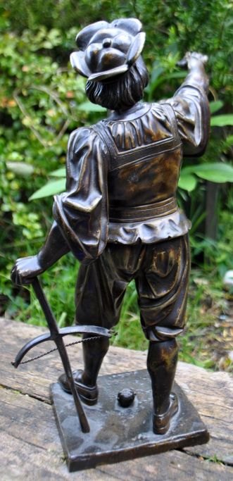 Unbekannter Künstler (19. Jahrhundert), Jäger mit Armbrust. Skulptur aus patinierter Bronze. H: 33 cm. B: 25 cm. Perfekter Zustand!