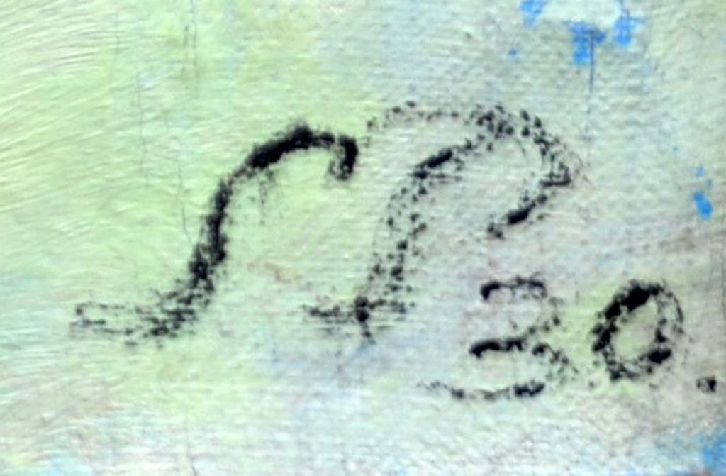Verso signiert. Etikett von der Retrospektivausstellung des Künstlers im Kunstausstellungsgebäude von Fünen aus dem Jahr 1953.