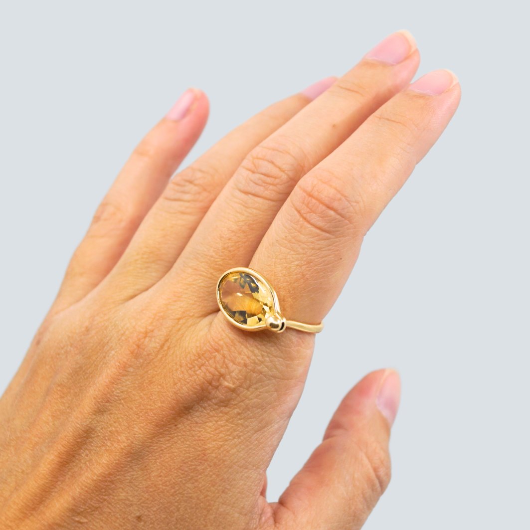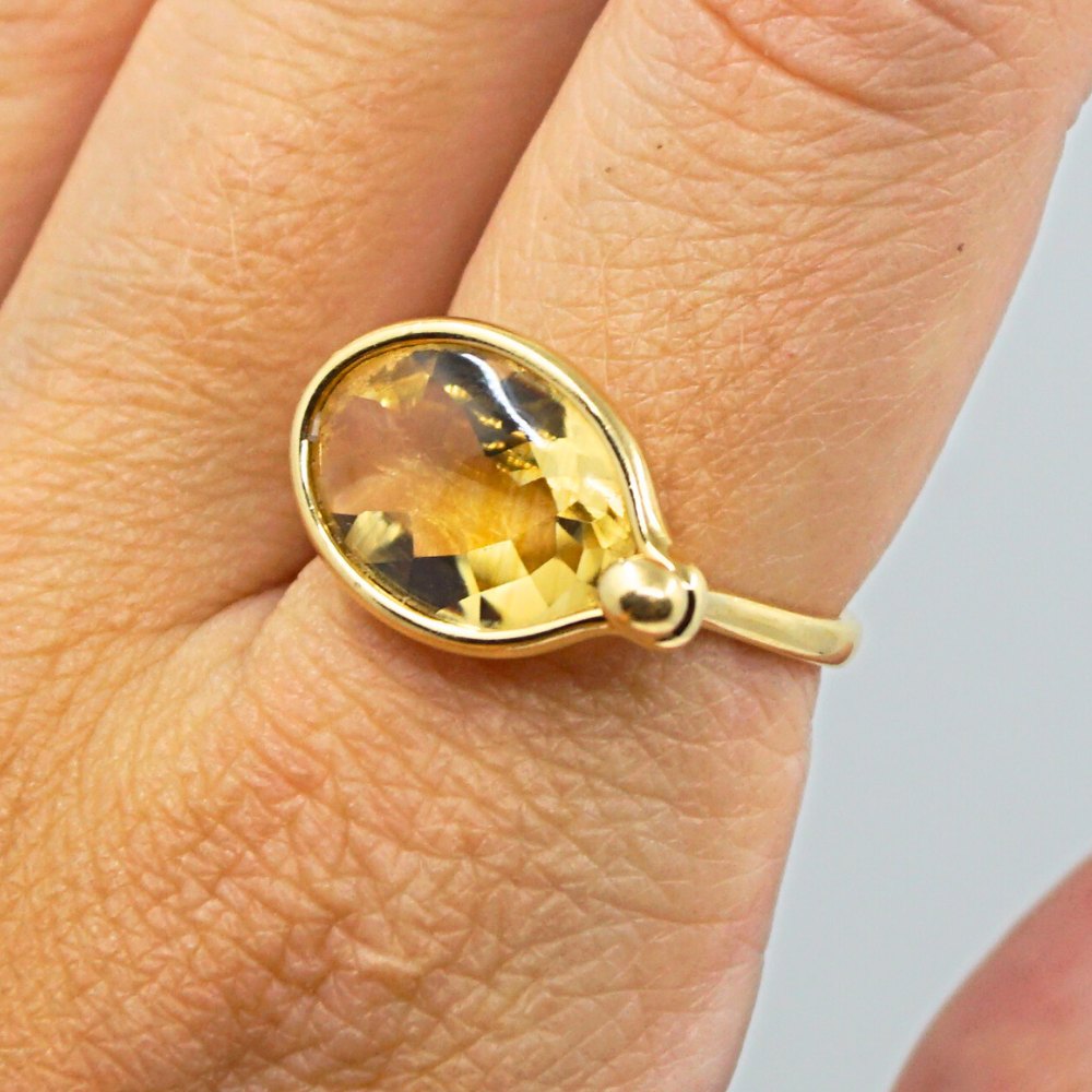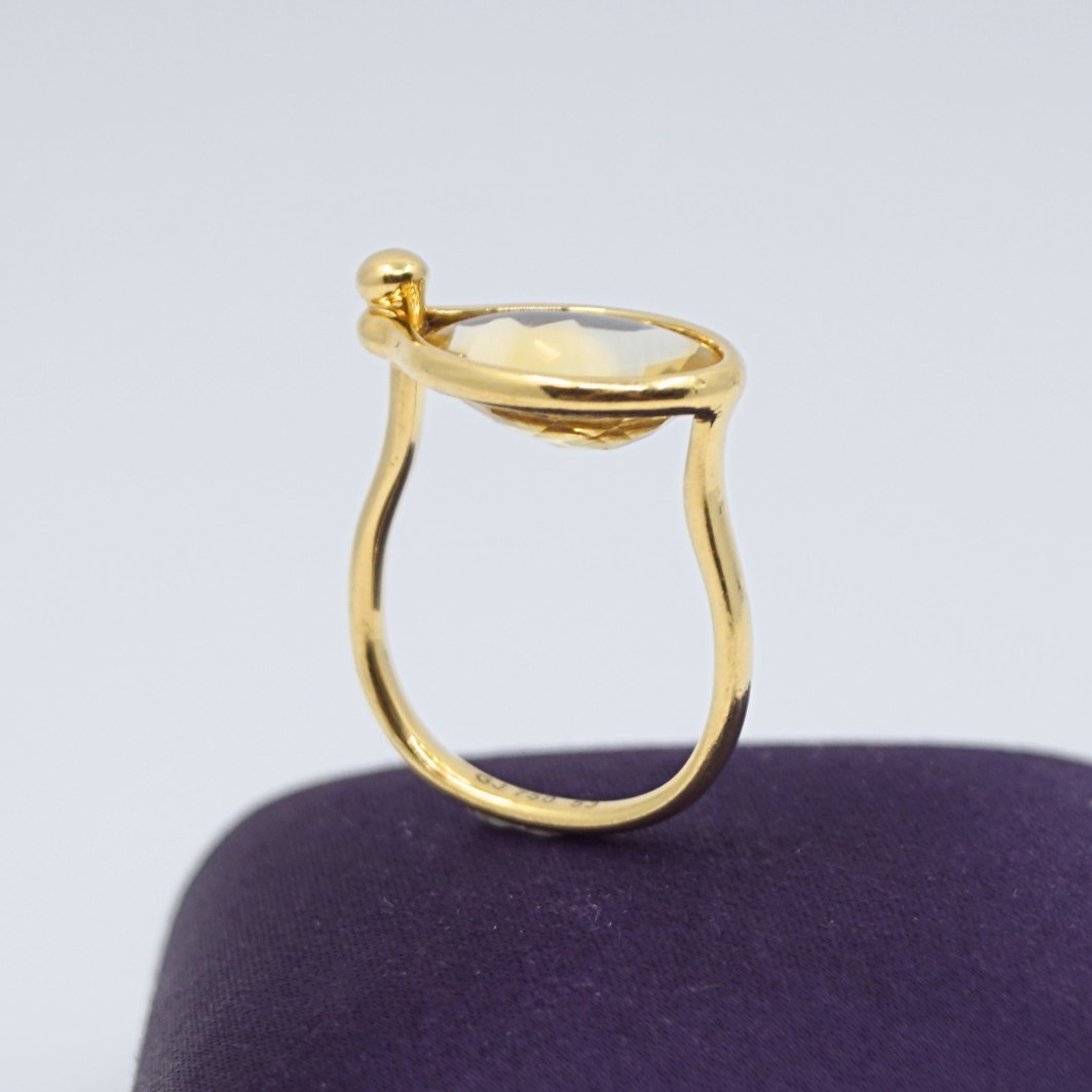 Vivianna Torun Bülow-Hübe for Georg Jensen; Savannah ring af 18 kt. guld prydet med citrin. mål top: 1,5 x 2,5 cm.