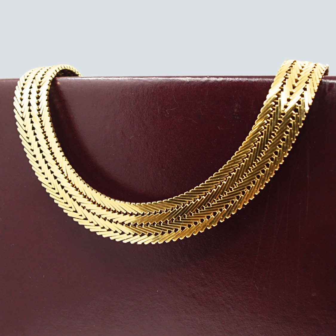 Alf Sørensen; Bred geneve/aks halskæde af 14 kt. guld.
