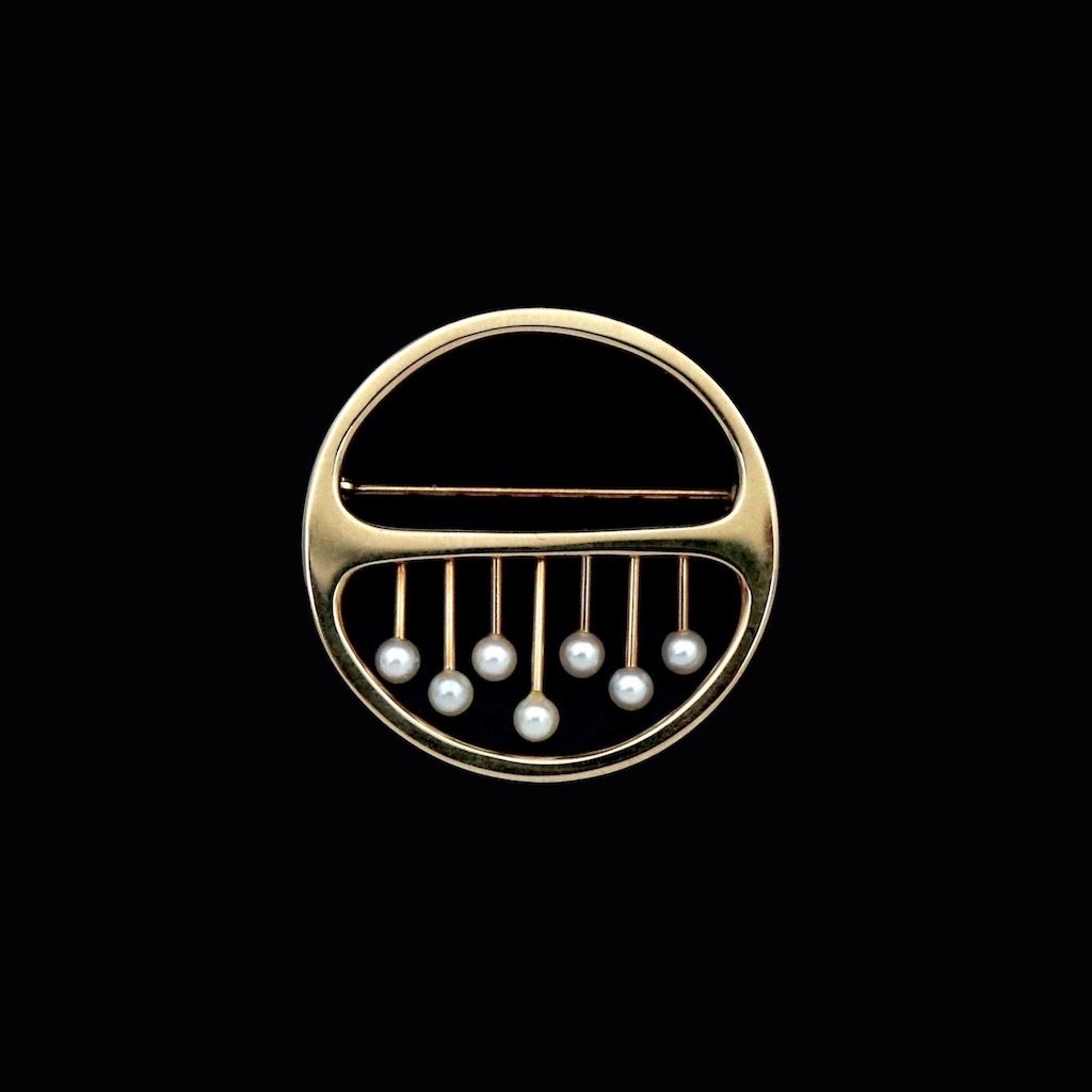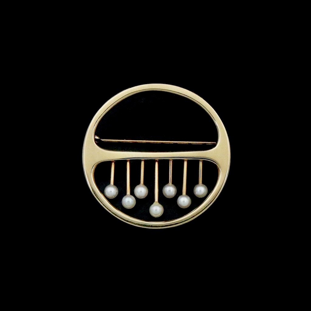 Bræmer-Jensen. Broche i 14k guld med perler.
