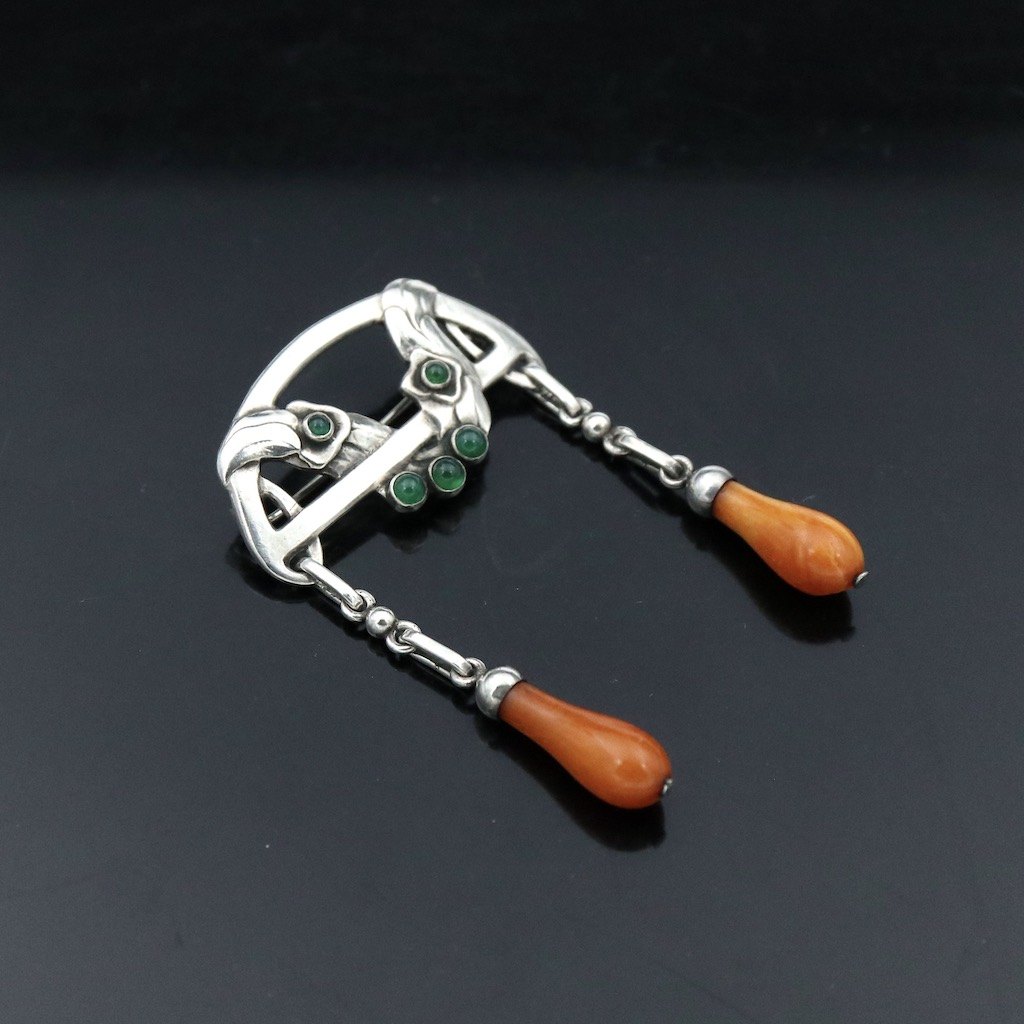 Text zugänglich auf Dänische: Georg Jensen. Broche i 826s sølv med agat og rav. 1907-14 stempler.