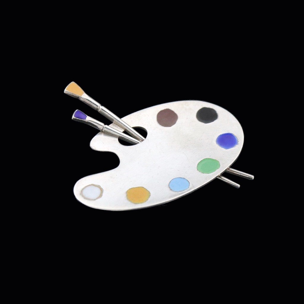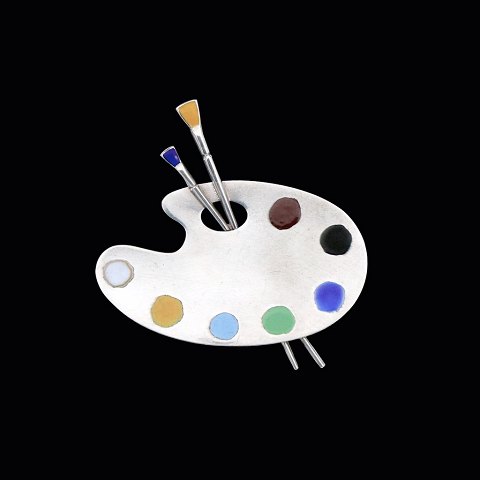 Text zugänglich auf Dänische: A. Michelsen. 'Palette' Broche i sterling sølv med emalje.