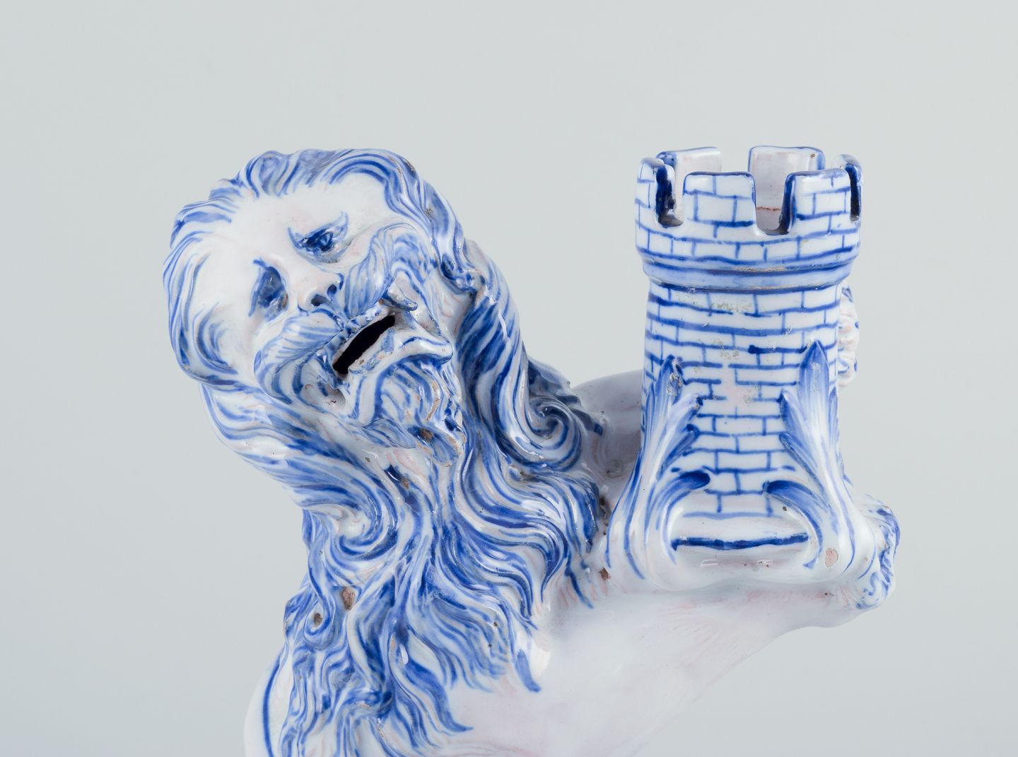Et par tidlige og store lysestager i fajance udformet som løver.
