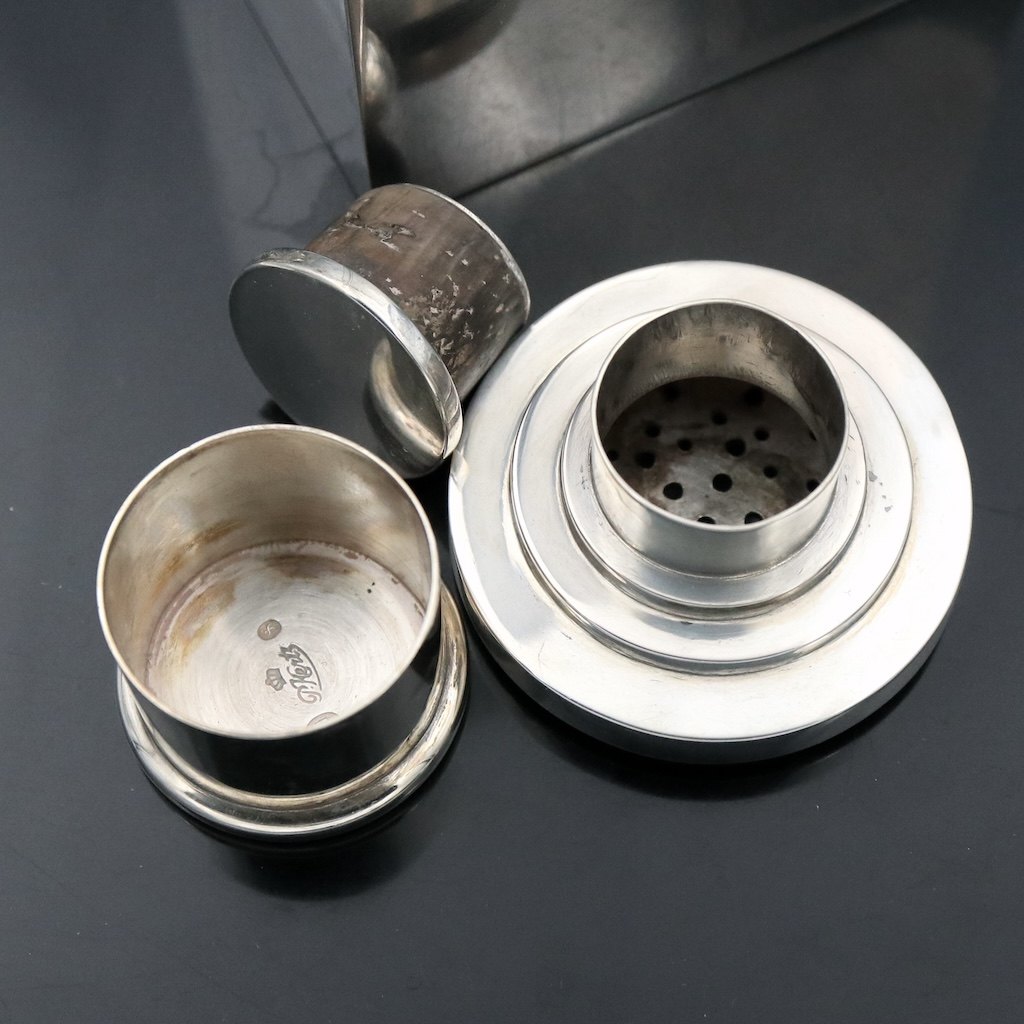 Text zugänglich auf Dänische: Peter Hertz - Copenhagen. Art deco cocktailshaker i sterlingsølv.