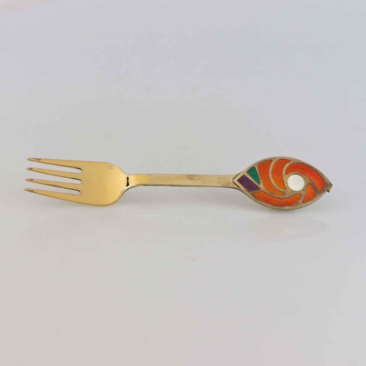 Julegaffel i forgyldt sterling sølv med indlagt emalje med teksten Jul 1971 og motiv af gyldent univers