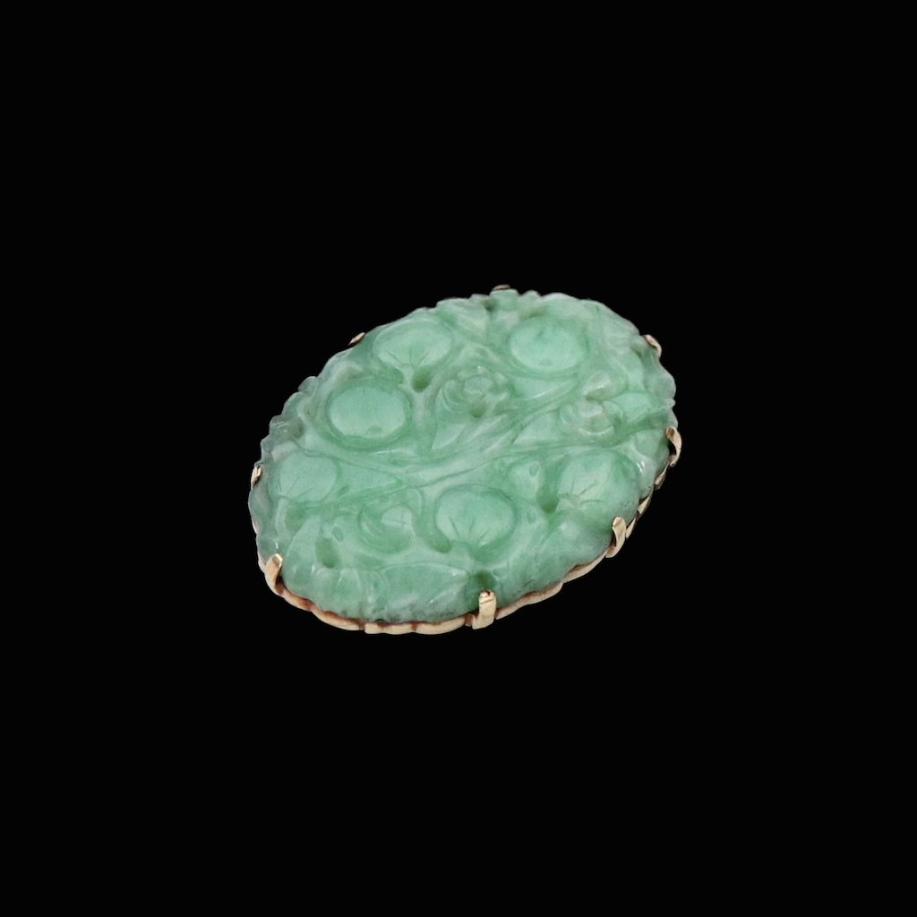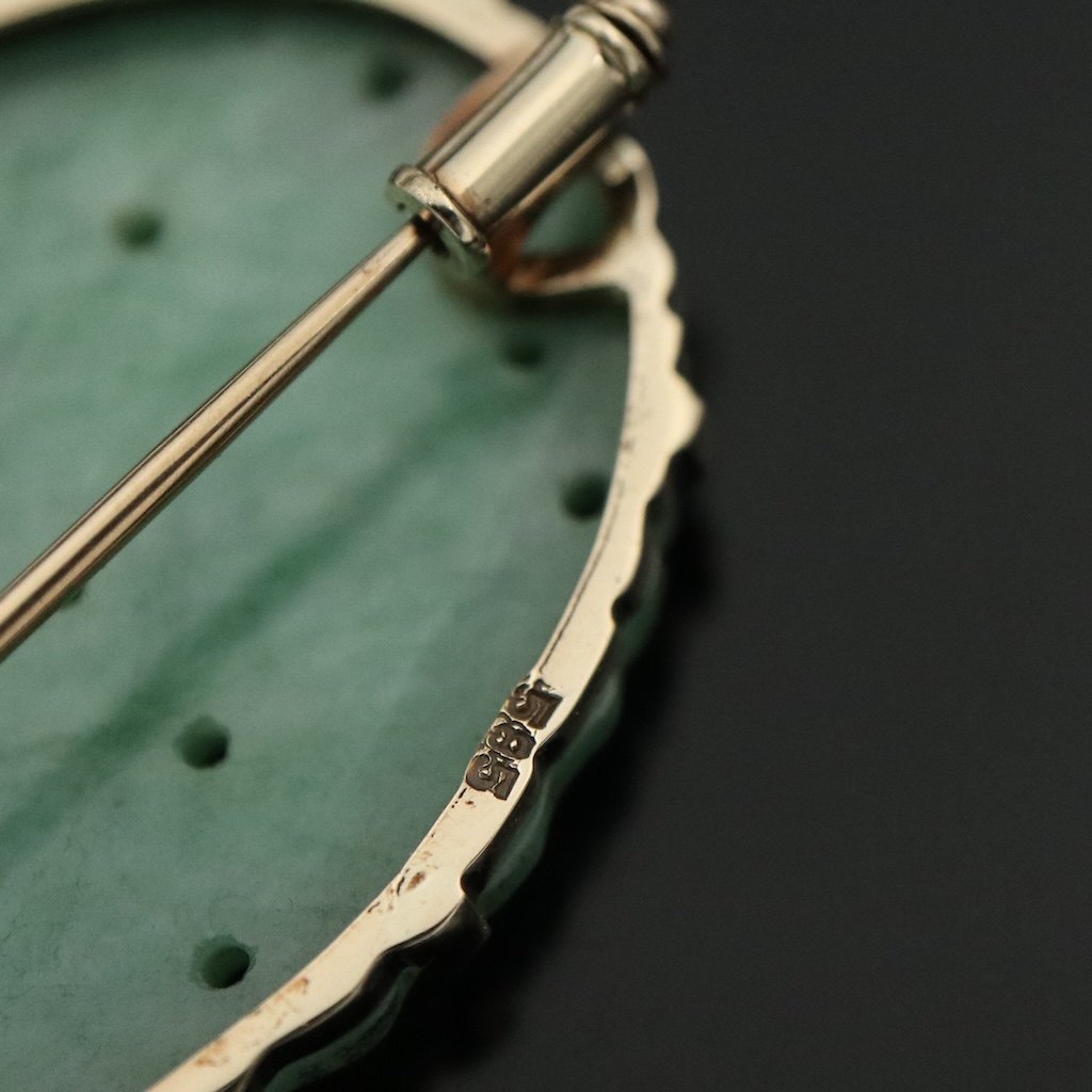 Broche i 14k guld med jade.
