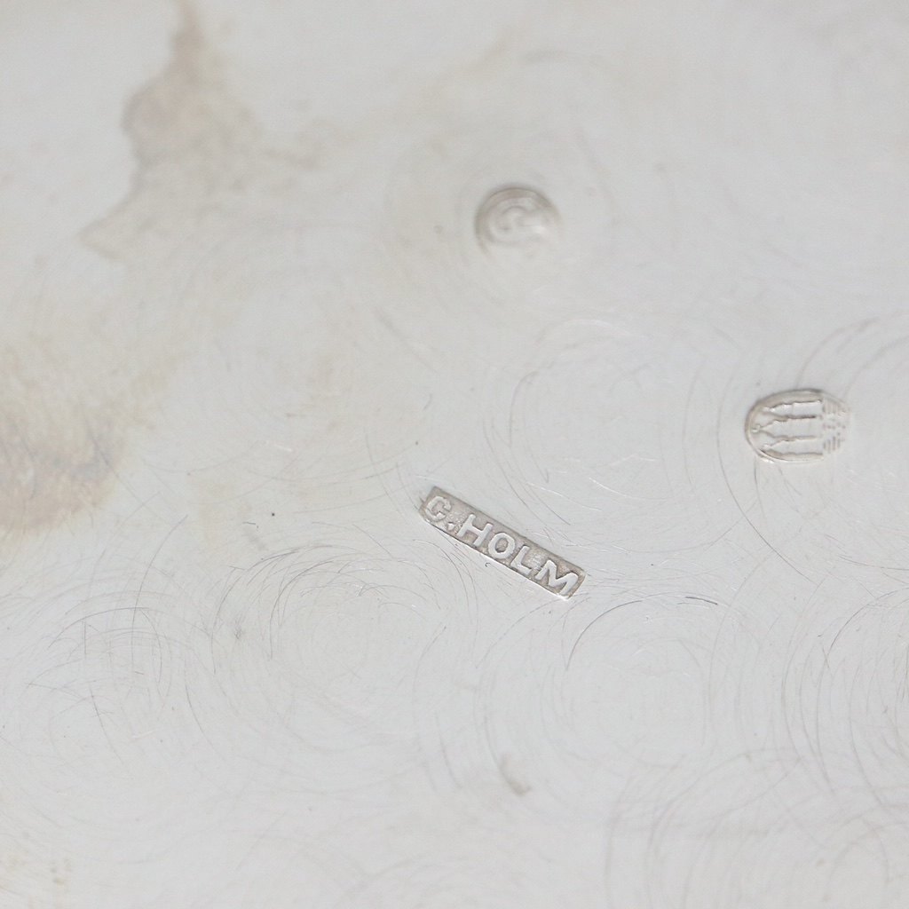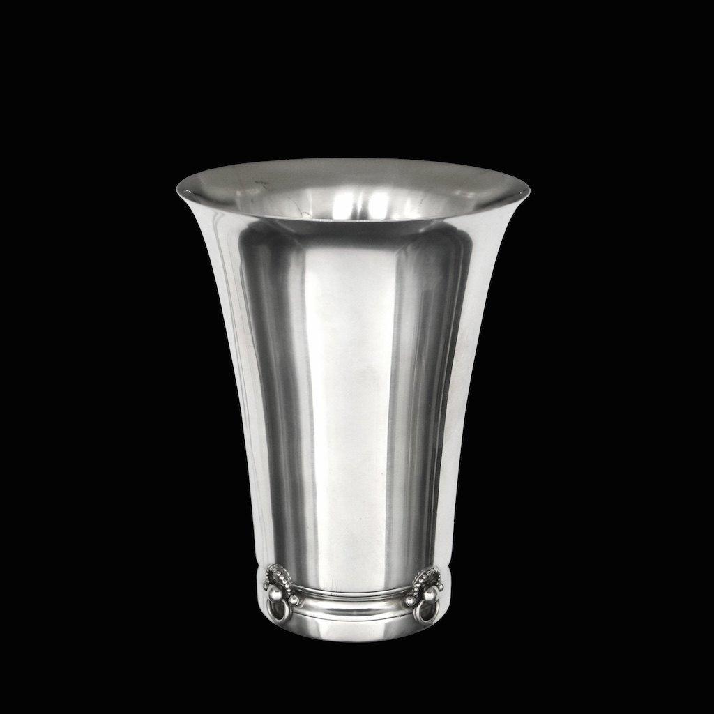 Text zugänglich auf Dänische: C. Holm - KBH. Vase i sølv - Anno 1932.