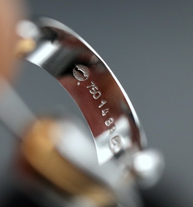 Text zugänglich auf Dänische: Georg Jensen. Øreringe i 18k Hvidguld og guld #1488 - Magic