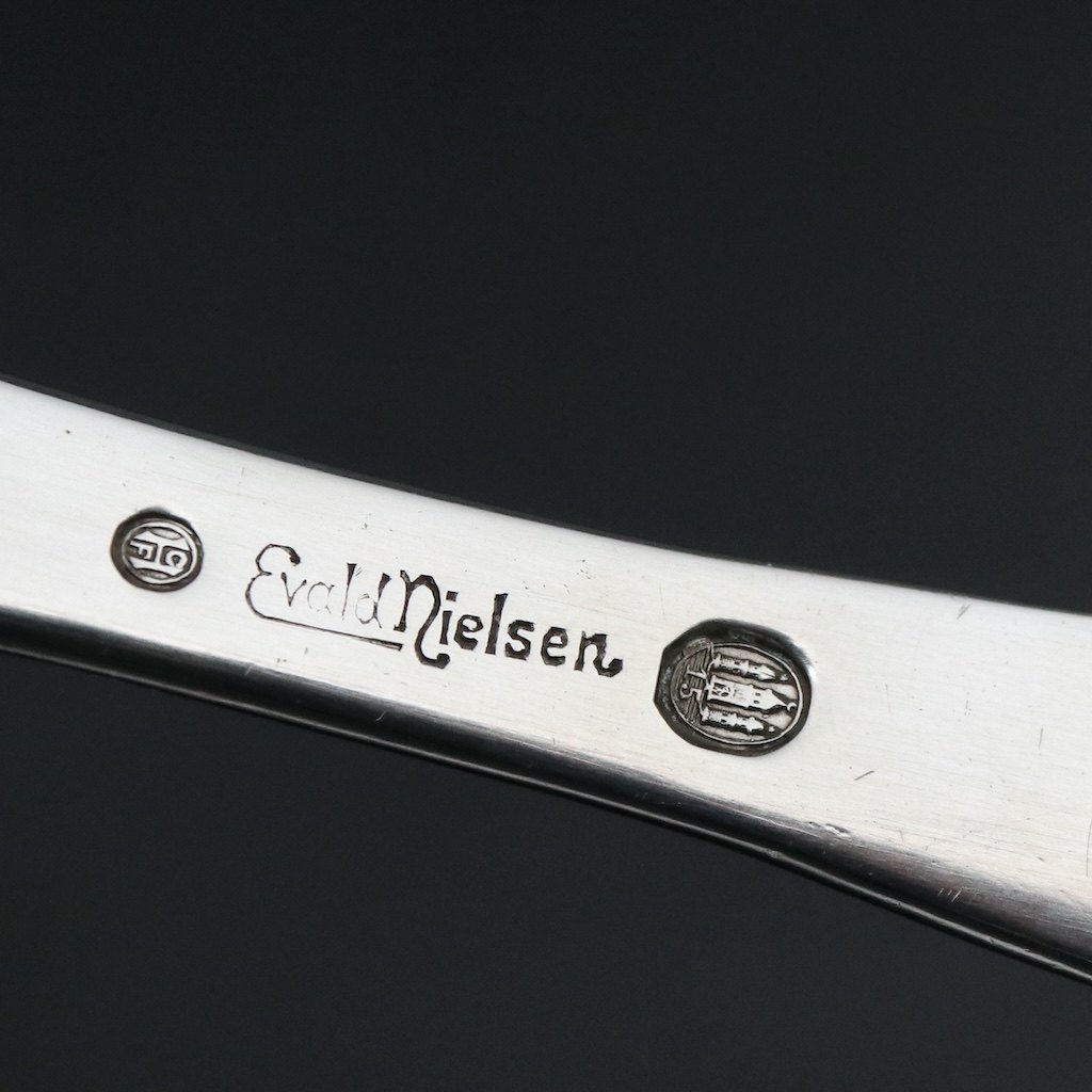 Text zugänglich auf Dänische: Evald Nielsen. Fiskeserveringsske i sølv.