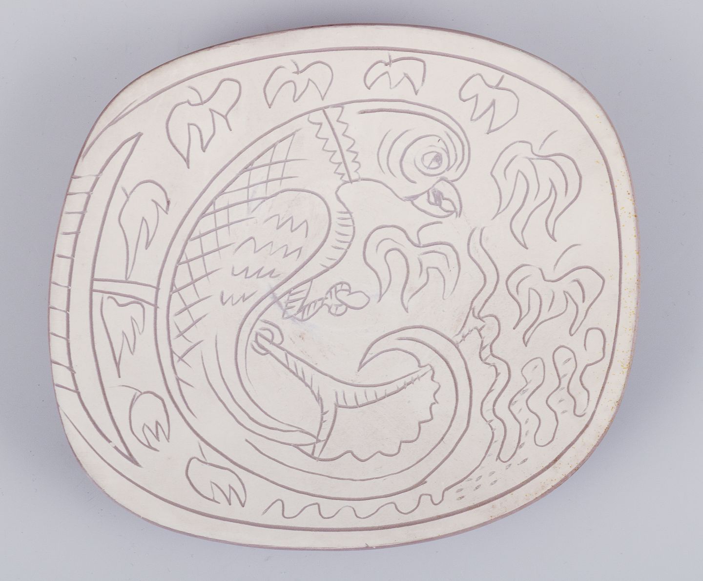 Forskellige dyremotiver indridset på lys bund.