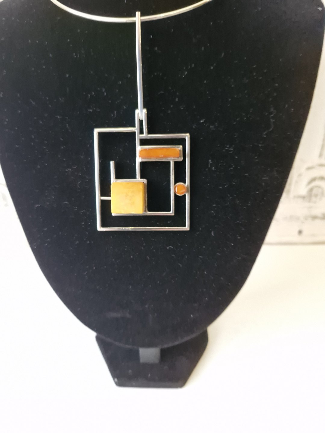 Text zugänglich auf Dänische: Bent Knudsen halsring i sterling sølv med grafik vedhæng prydet med rav