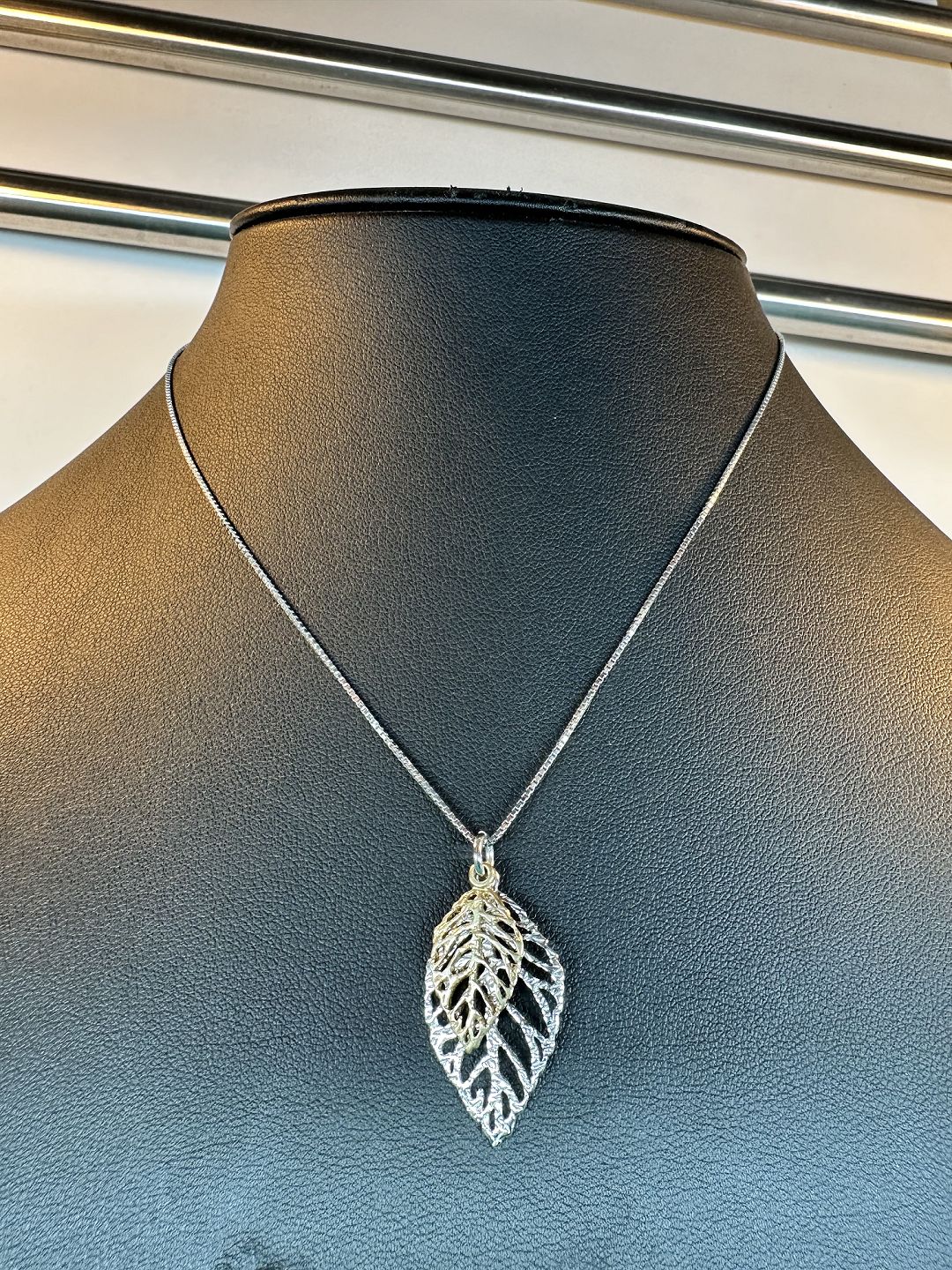 Sterling Silber Halskette mit Anhänger, Silber 925 vergoldeter Anhänger, Länge 40 cm, Anhänger hat die Form eines Blattes.