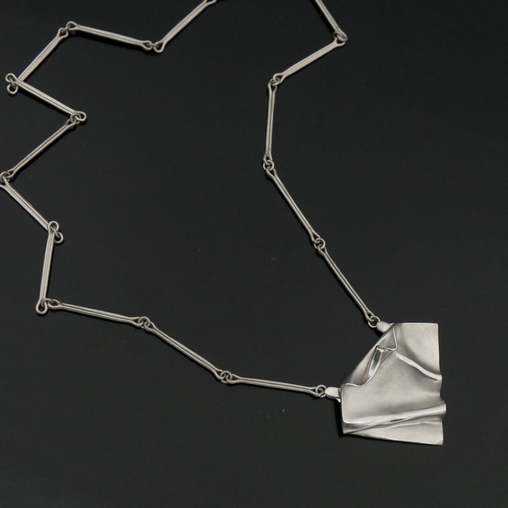 Text zugänglich auf Dänische: Claus Georg Melcher. Moderne halskæde / Broche i sterlingsølv.