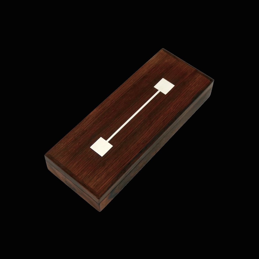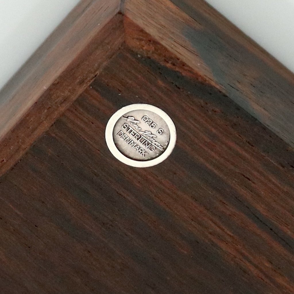 Text zugänglich auf Dänische: Hans Hansen. Æske i palisander med indlagt sterling sølv.