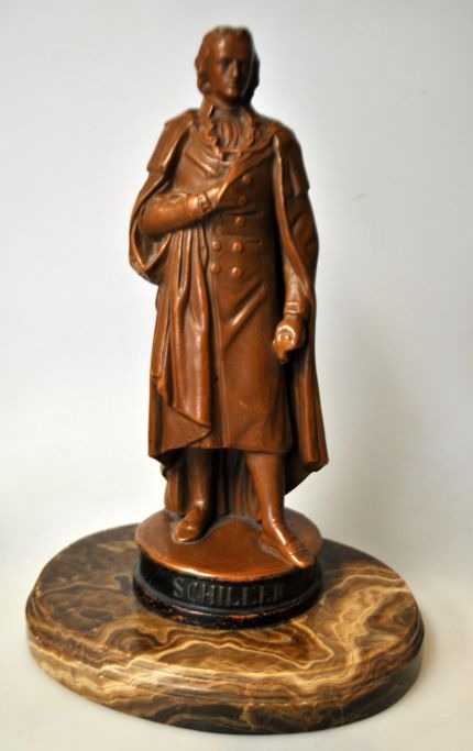 Schiller, 19. Jahrhundert. Deutschland. Bemaltes ton Figur. Auf ovalem Alabasterfuß. H: 30,5 cm. Fußlänge: 20 cm.