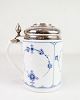 Lidded mug model 1/2023 from Royal Copenhagen, made of porcelain with classic blue fluting fluted decoration and baroque lid in silver. An elegant combination of Danish porcelain art and silversmithing.