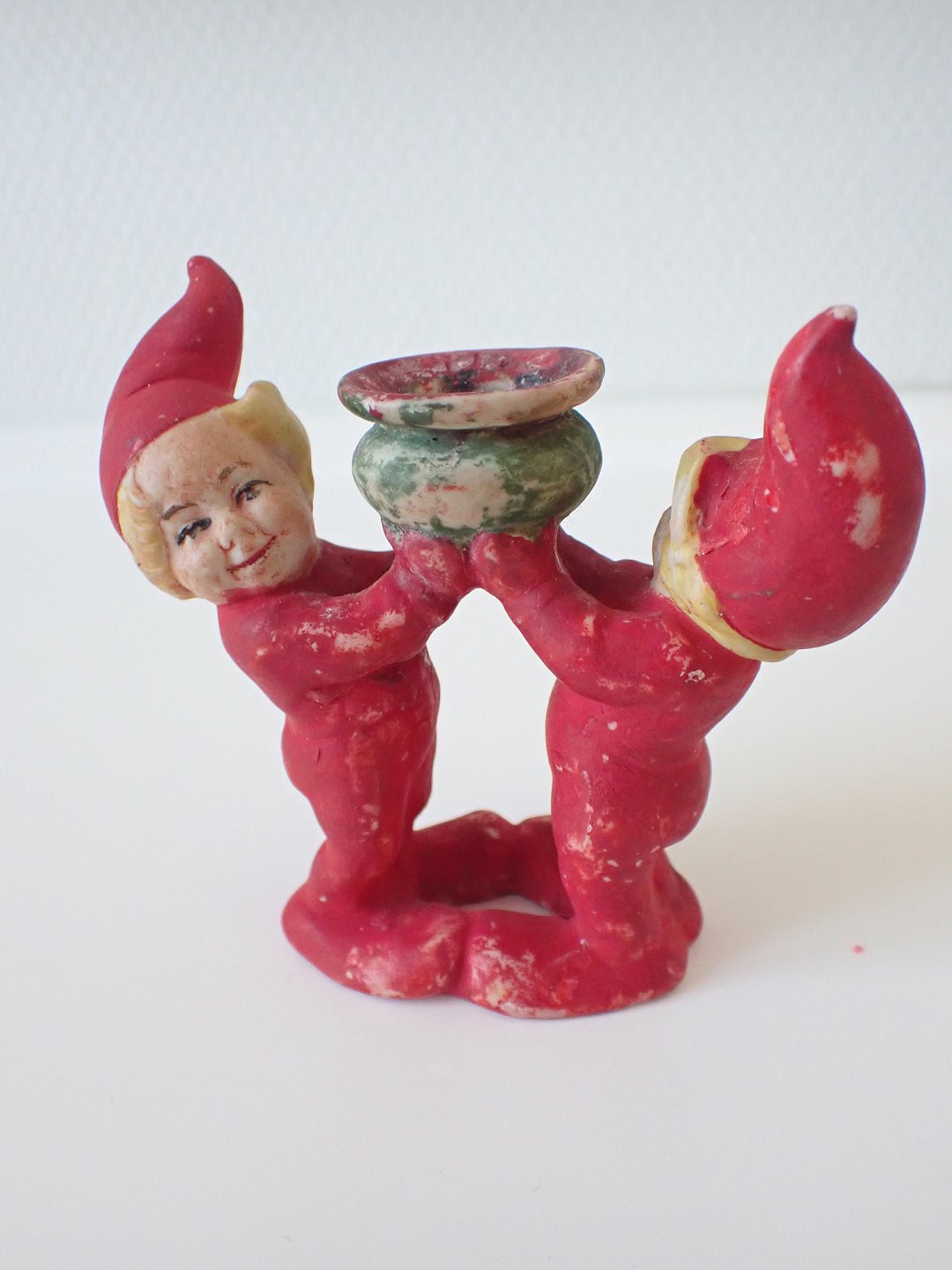 En julestage med et par nisser i i håndmalet biscuit. Tyskland ca. 1930. Højde: 9 cm. Bredde: 10 cm. I flot tidstypisk stand. Pris: 800 kr.