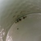 Ølkrus eller kande med hank i fajance fra serien relief men med motiv af ruder. I farven azurblå.