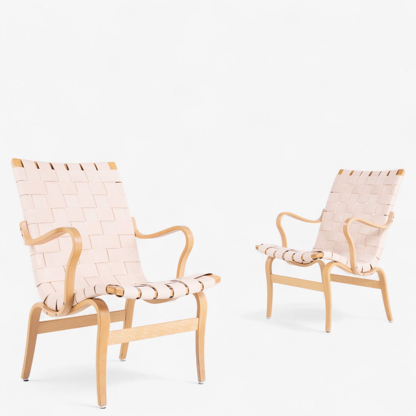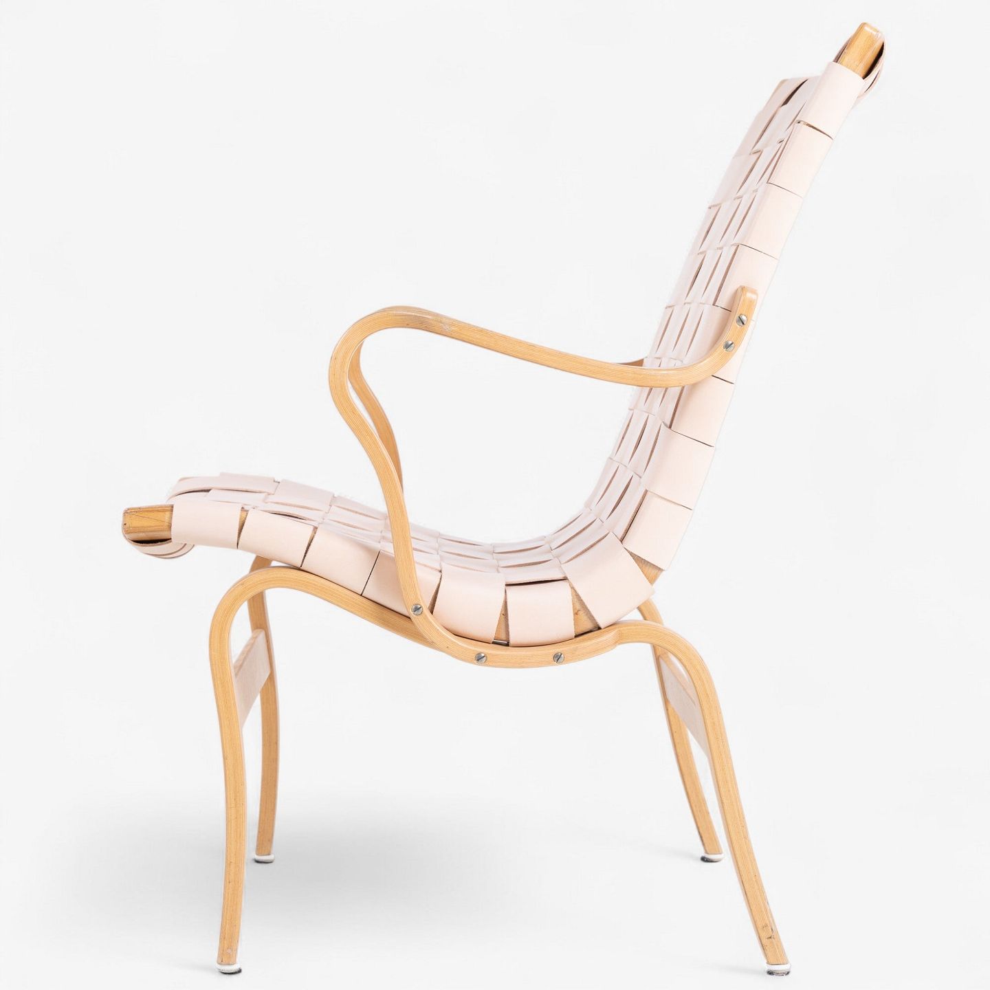 'Eva'-lænestol i patineret bøg og nyt flettet naturgjorde. Mærket fra producent.
