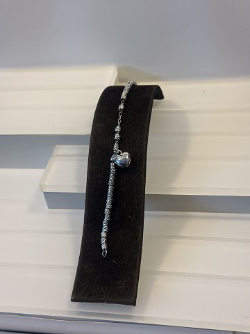Damenarmband aus Sterlingsilber. Länge: 18 cm. Das Armband hat ein silbernes Herz in der Mitte und silberne Kugeln rundherum. Schöner und perfekter Zustand.