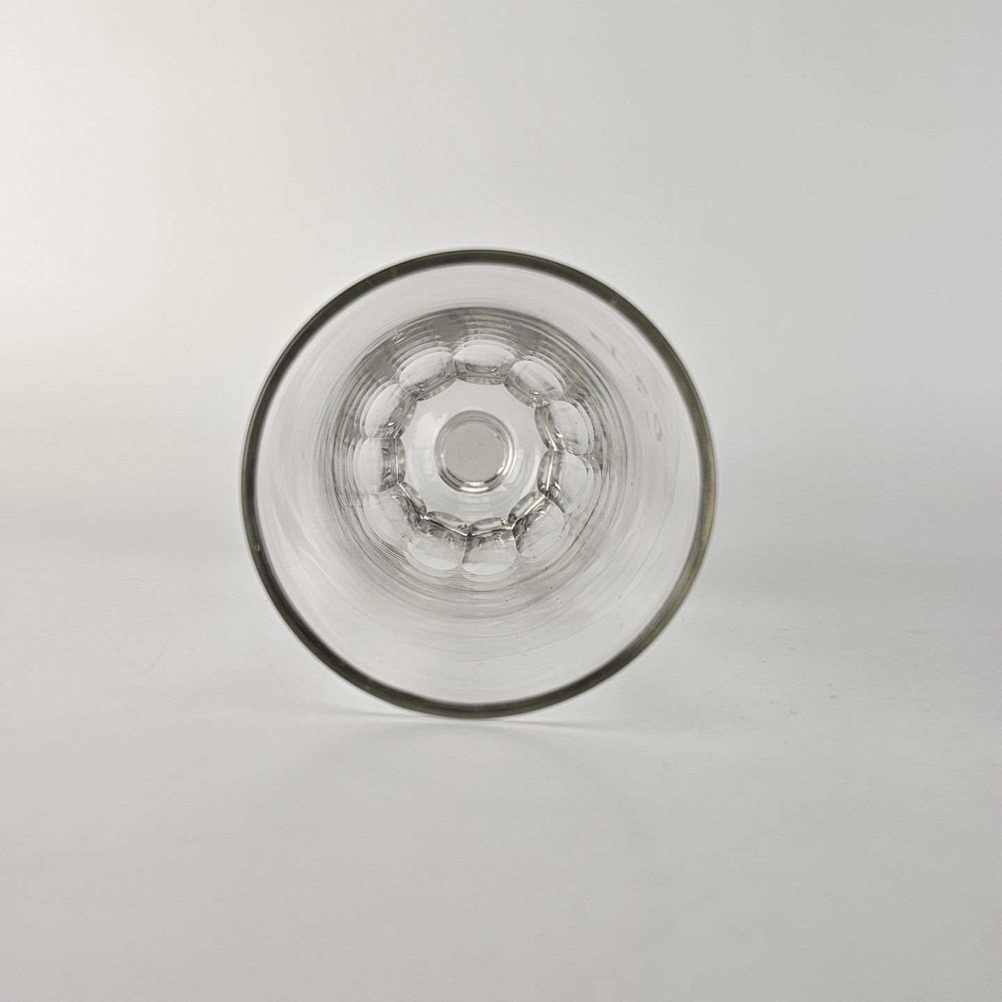 Vinglas i klart glas, opdrevet og kugleslebet i bund. Med olivenslibninger