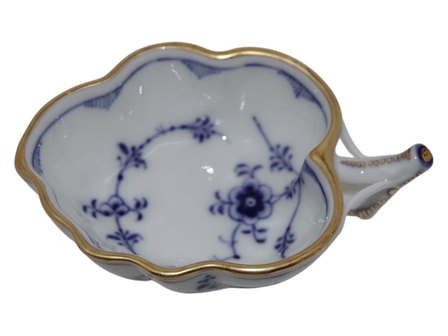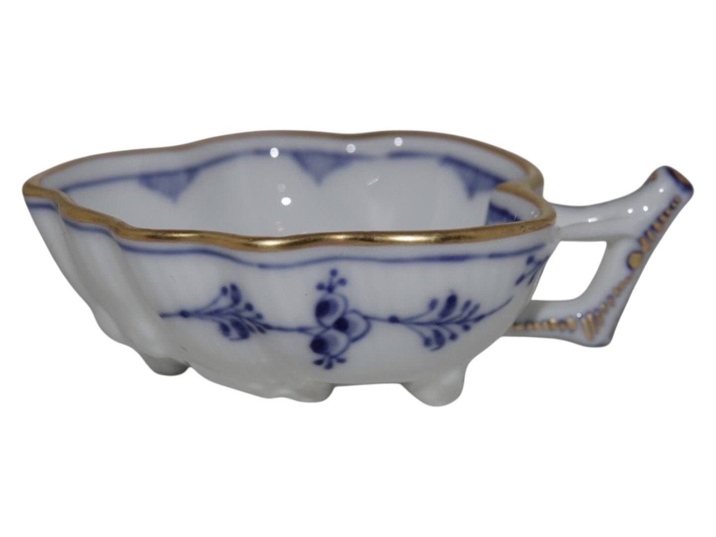 Royal Copenhagen Musselmalet Riflet med guldkant, sjælden lille skål med hank.