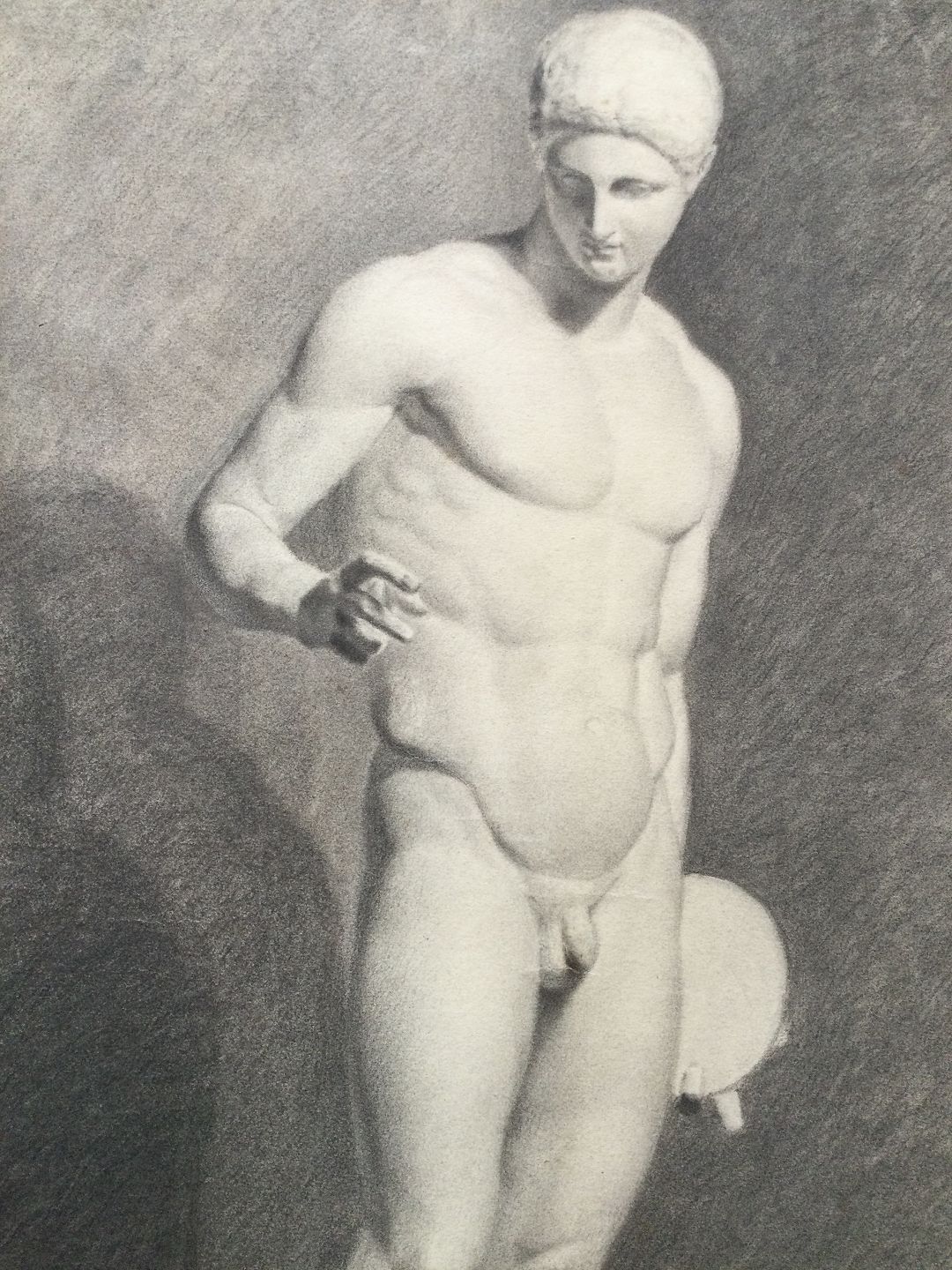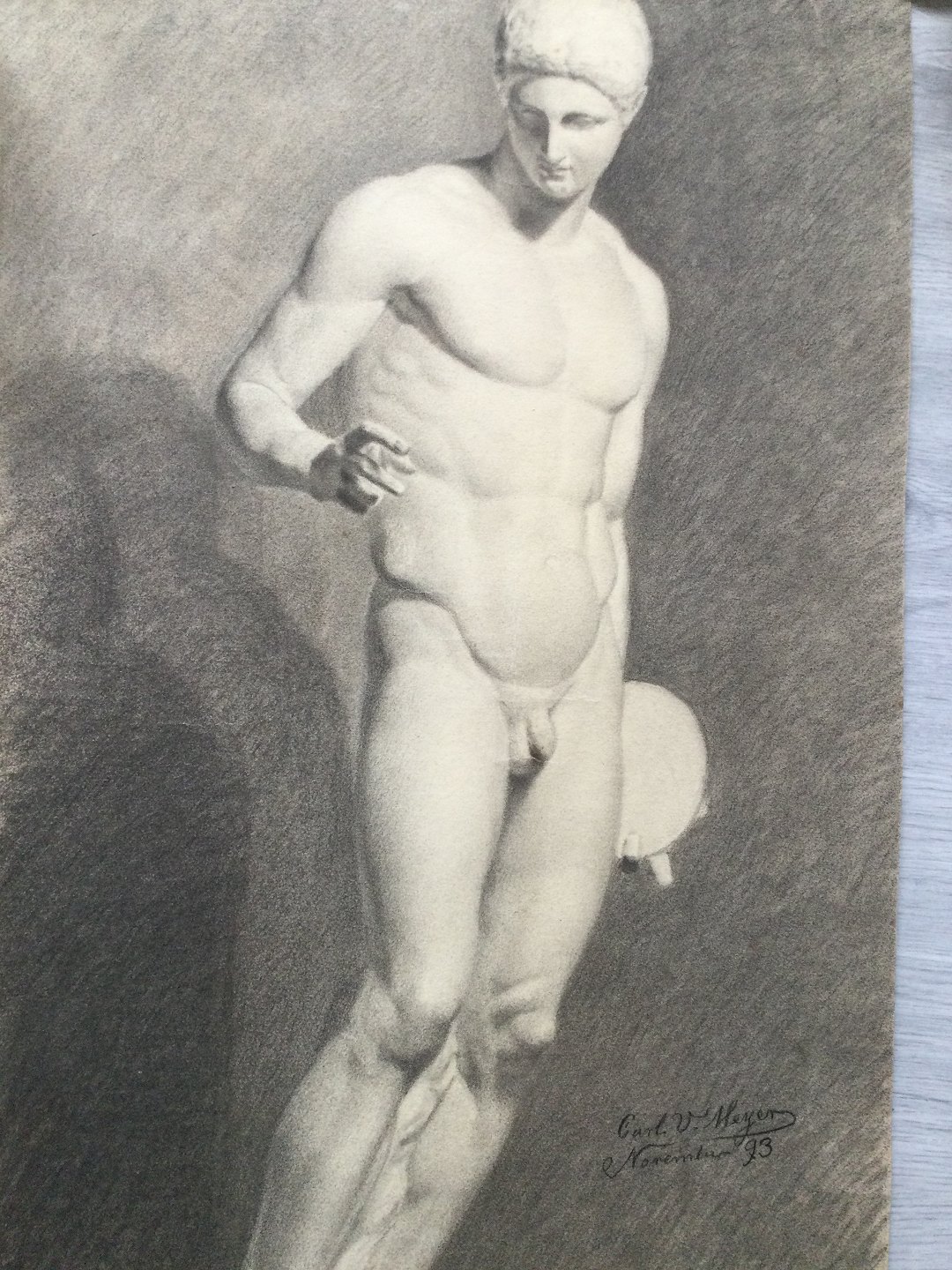 Text zugänglich auf Dänische: Akademitegning af Carl V. Meyer 1893 - Nøgen mand - Marmorskulptur - Diskoskasteren.