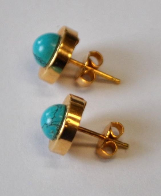 Paar Ohrstecker aus 18 Karat Rotgold mit Türkisen, 20. Jahrhundert. Gestempelt. Gewicht: 2,3 Gramm.