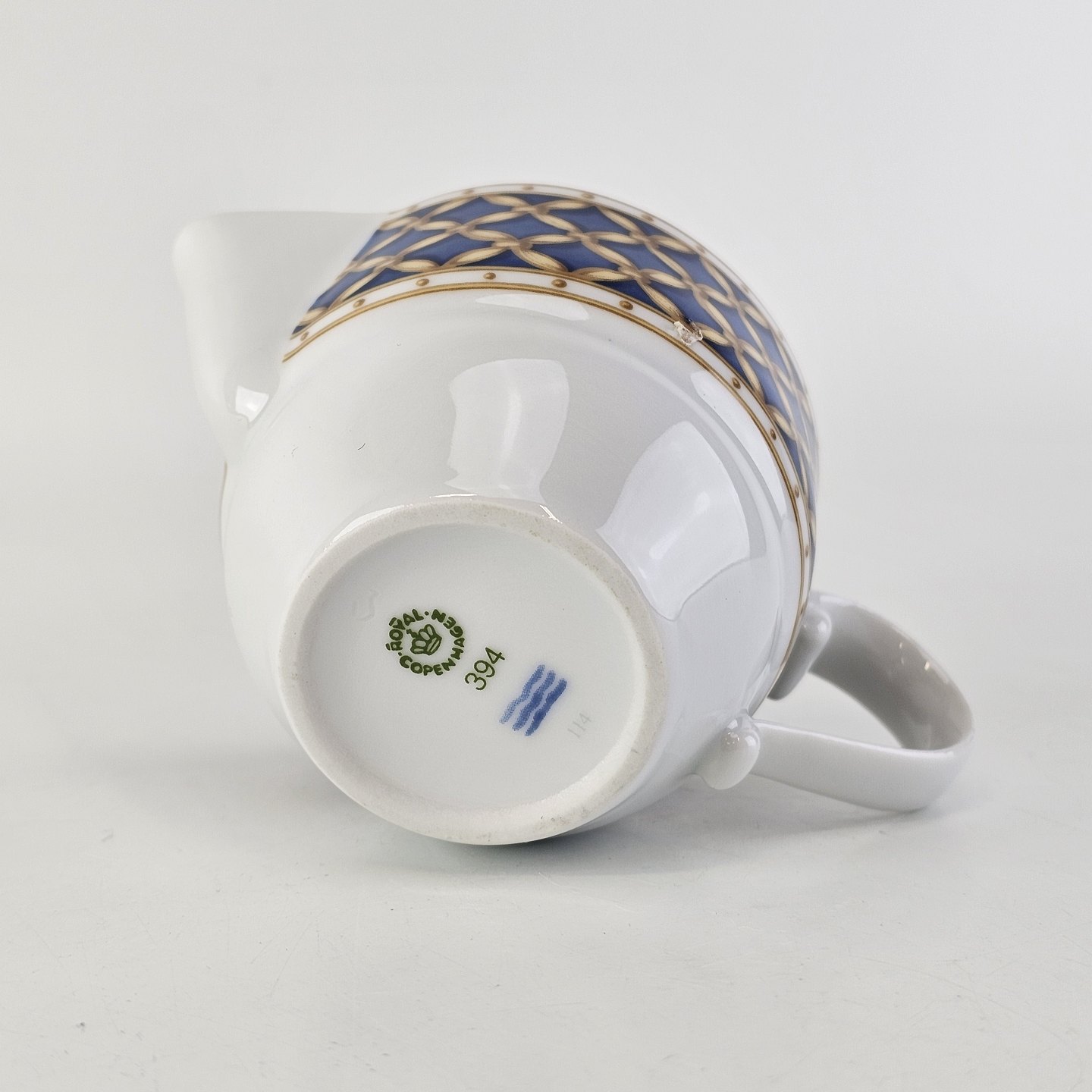 Liselund er hvidt porcelæn dekoreret i lyseblå eller mørkeblå nuancer med fletmønster