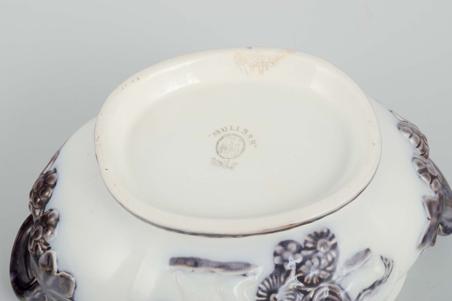 Gefle Porcelainsfabrik blev grundlagt i 1910 i Gävle, men allerede i anden halvdel af 1800-tallet blev der fremstillet fajance i området. Terriner og fade med transfertryk og reliefdekorerede vinrankemotiver var populære husholdningsartikler og blev produceret i store oplag til både hjemligt brug og eksport. “Mullbär”-dekoren er et tidstypisk eksempel på denne produktion.