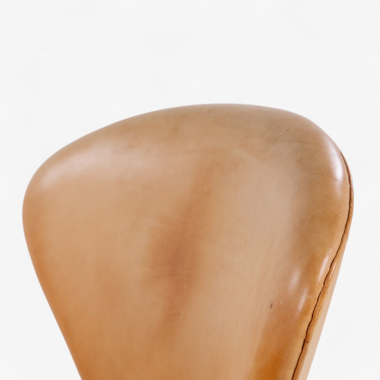 AJ 3320 - 'Svanen'-lænestol i patineret naturlæder på ny fod. Stemplet fra producenten.