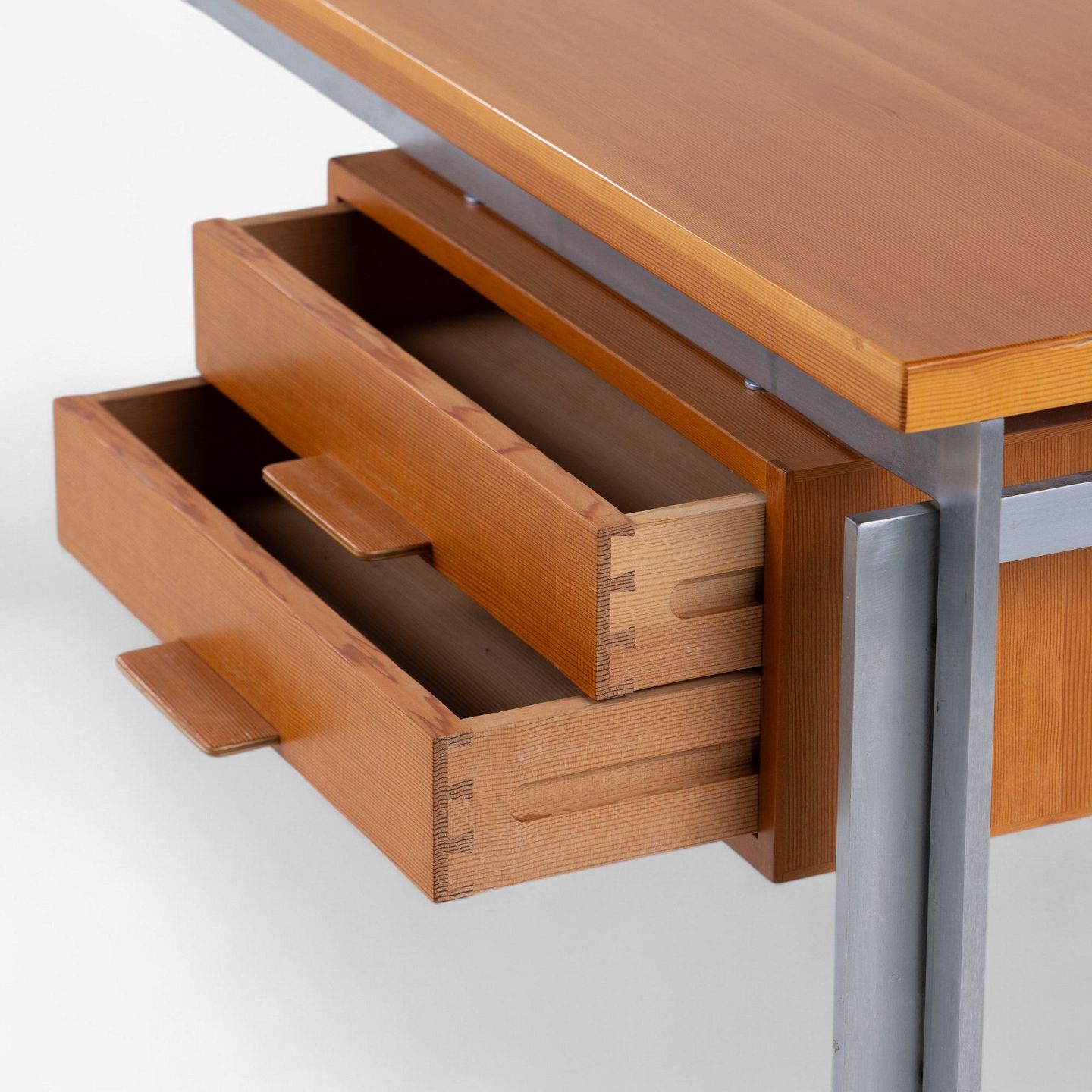 PK 55 - Arbejdsbord/skrivebord med plade og skuffemodul i oregon pine og stel i stål. Fra 1985. Mærket fra producent.