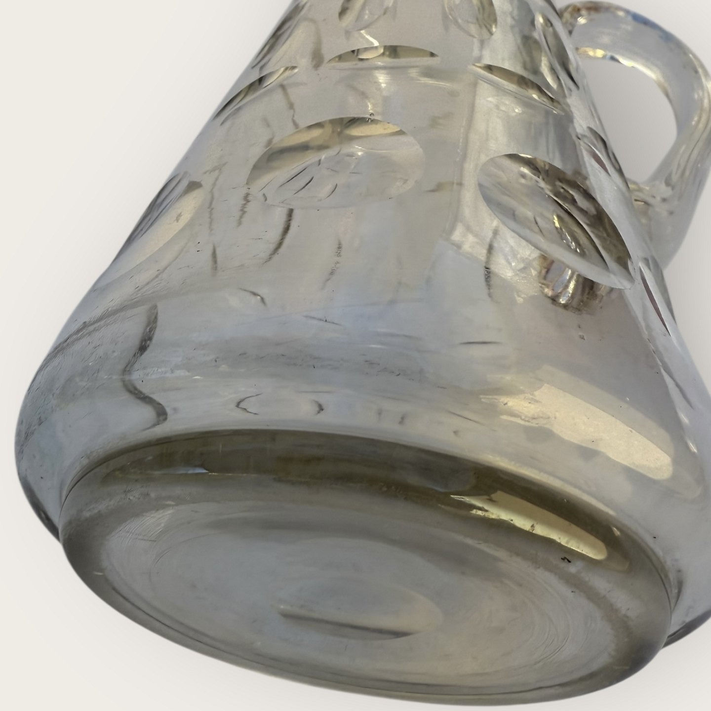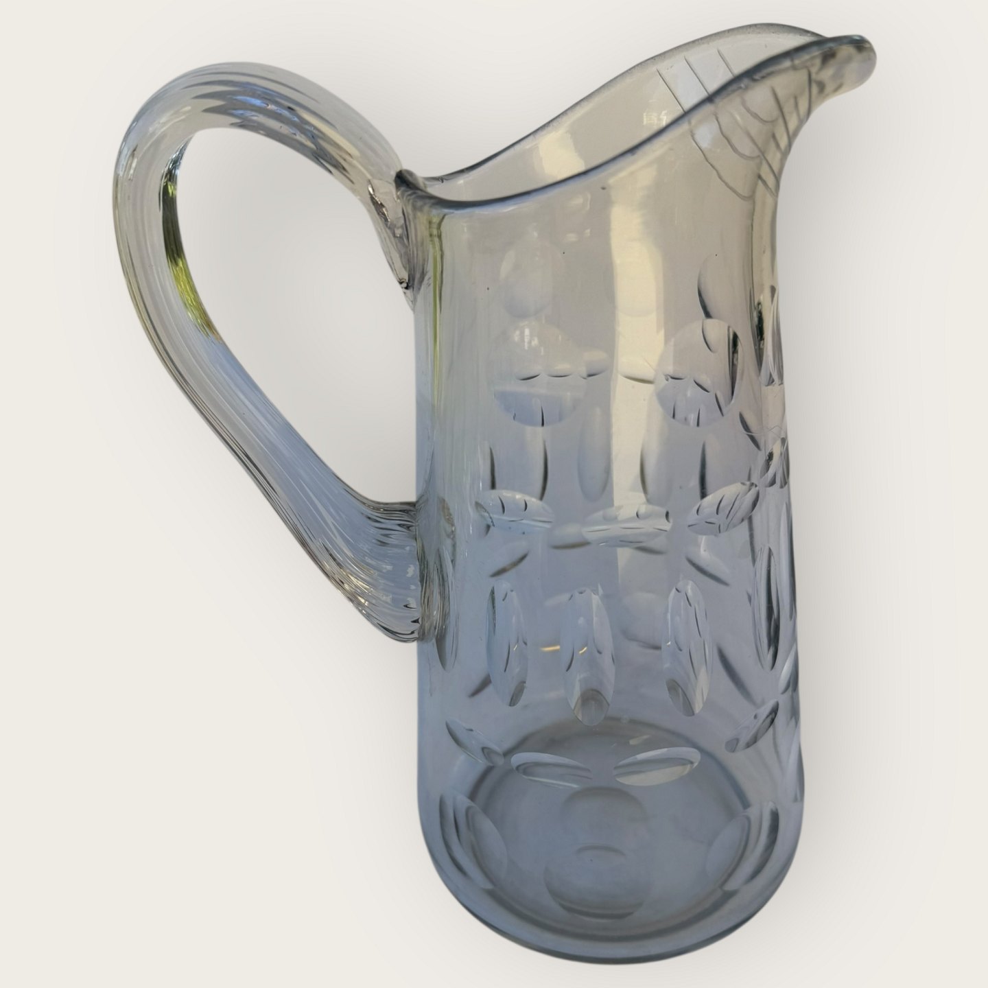 Schneckenhenkelkrug mit Einschnitten, 23cm hoch, 16x12cm breit, *Kleiner Chip am Henkel an der Stelle, wo er am Krug befestigt ist (siehe Foto), sonst sehr guter Zustand*