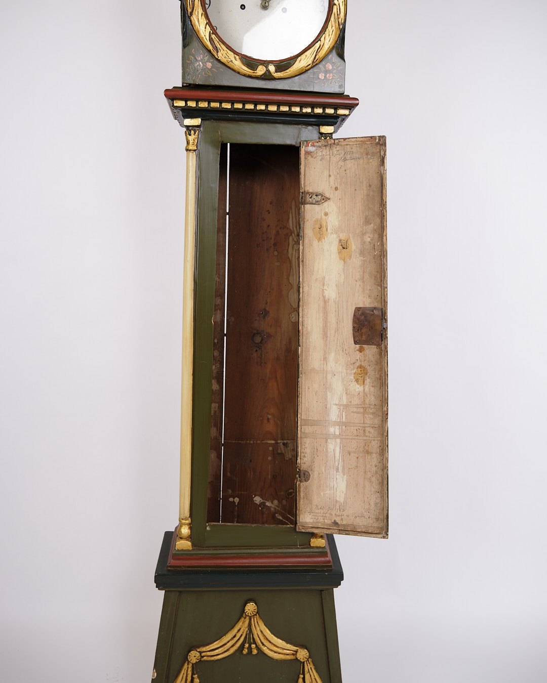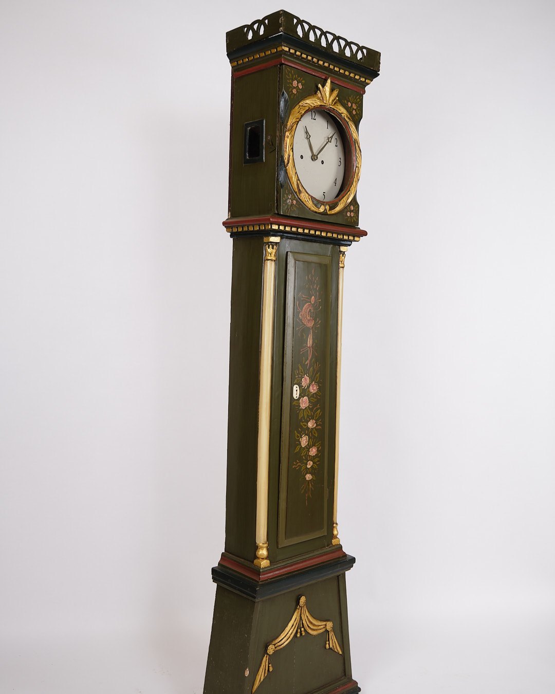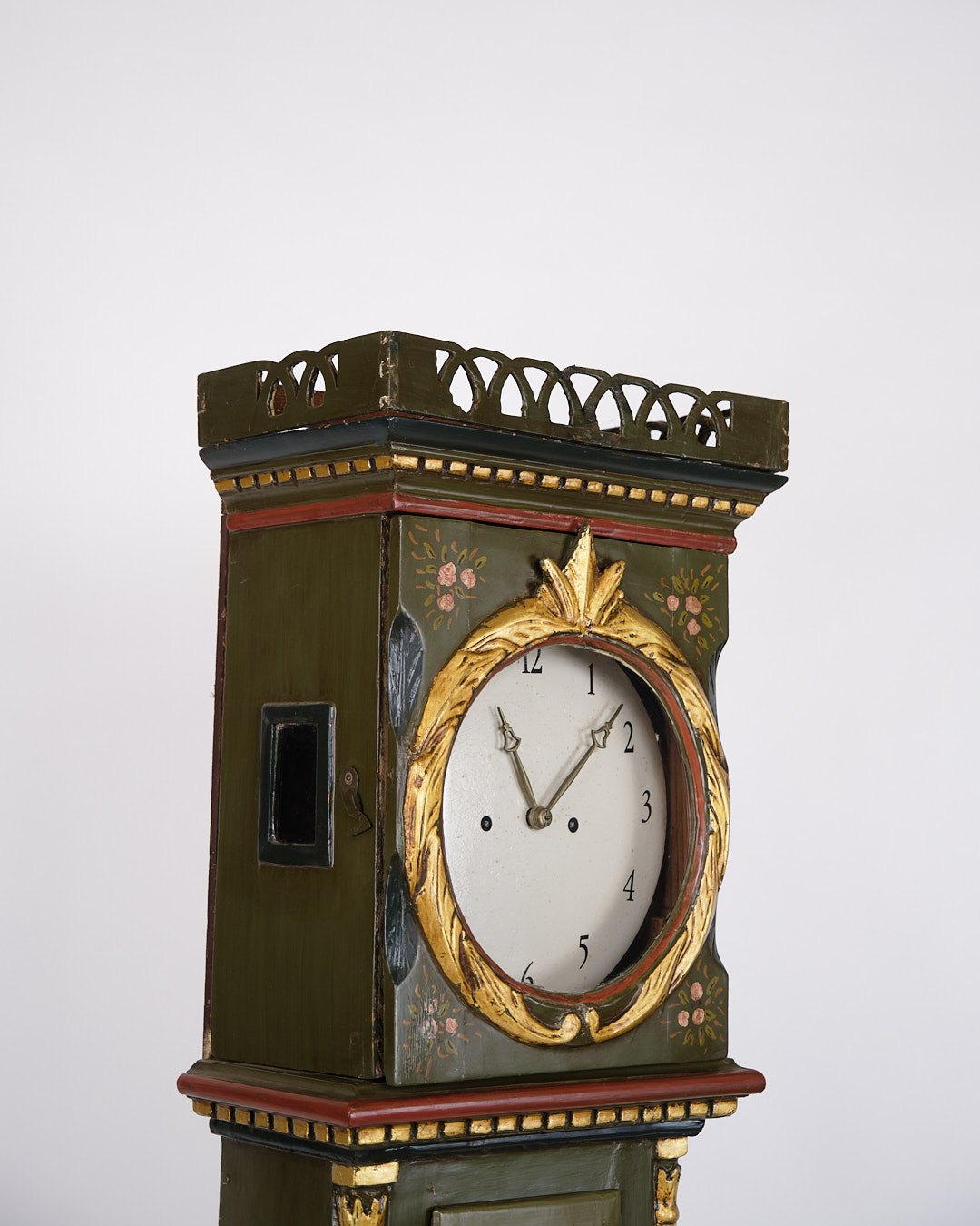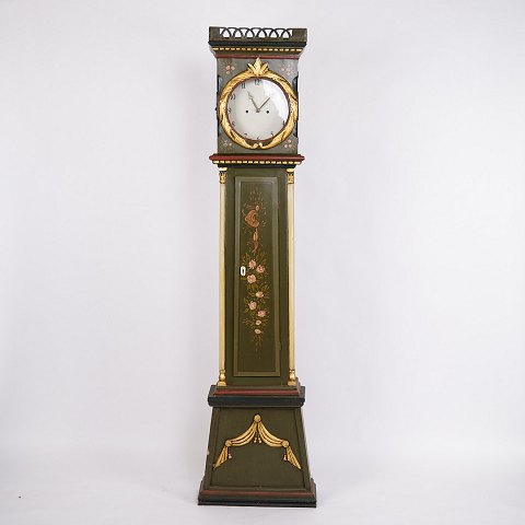 Antikt bornholmerur / standerur fra 1840’erne. Bemalet med håndmalet dekoration.