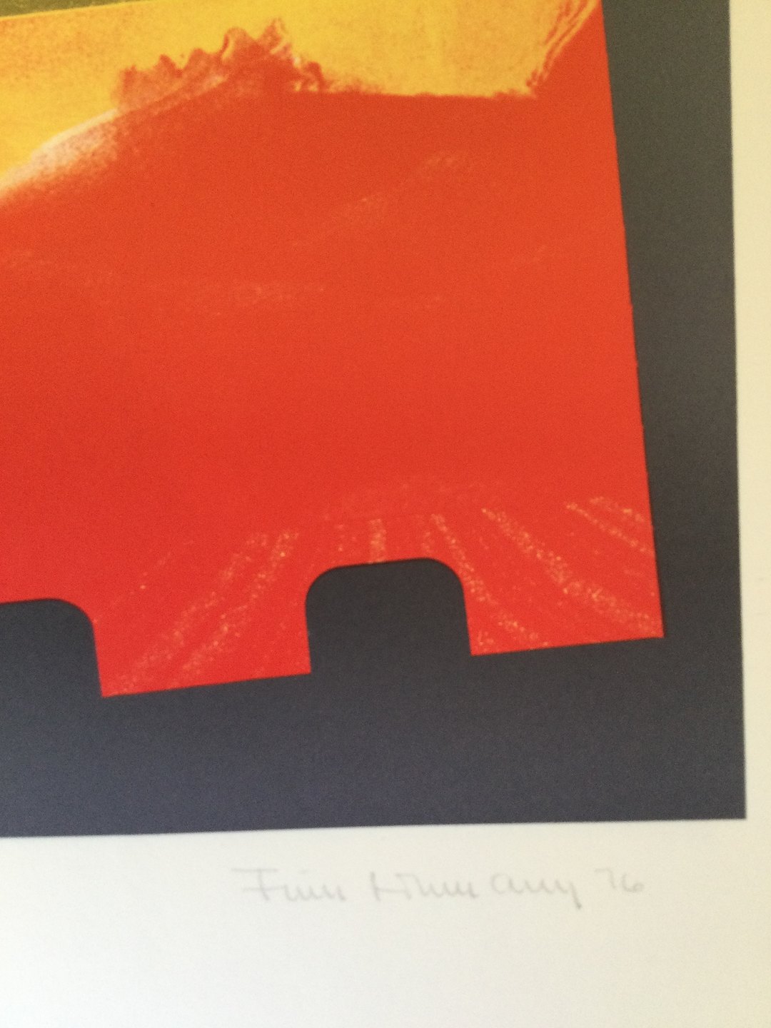Farvelitografi af Finn Lohmann - Komposition 1976.