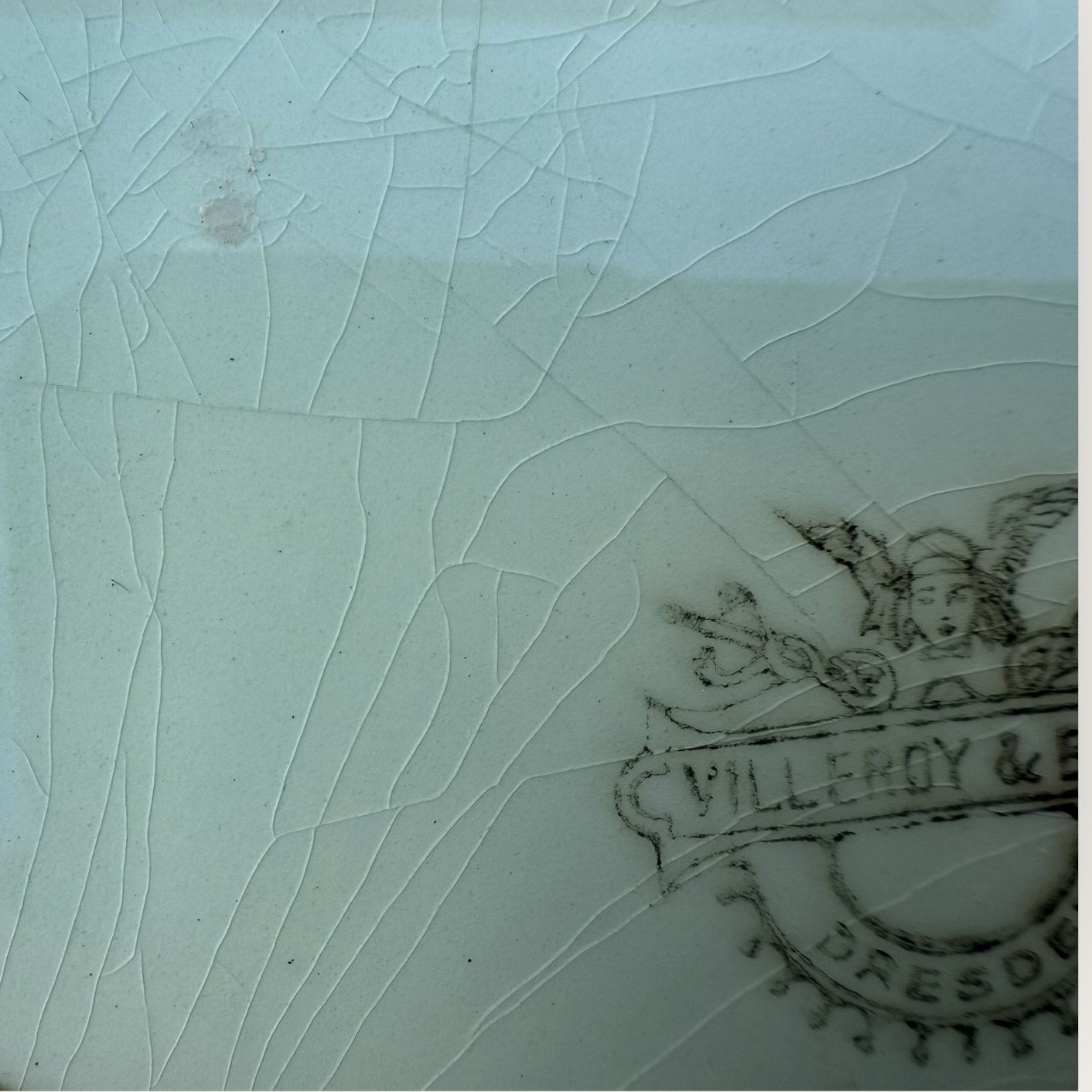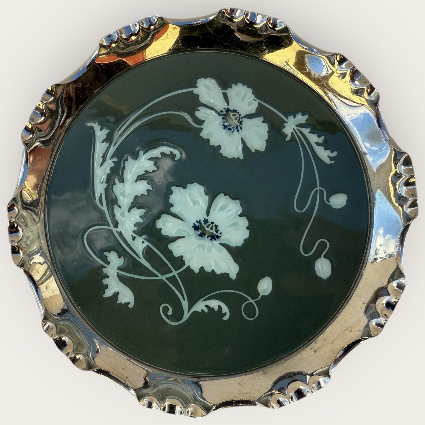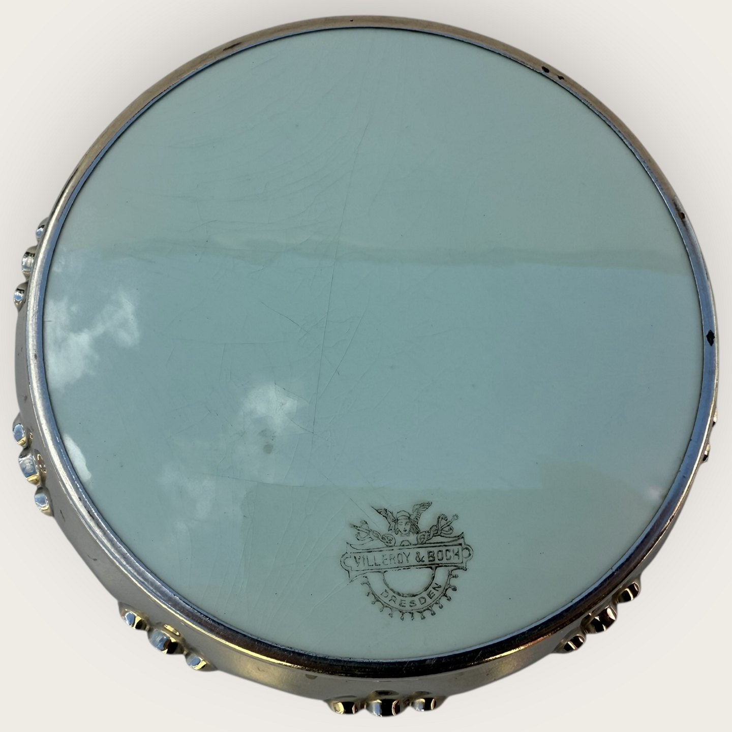 Villeroy & Boch, Flaschentablett / Schale, Durchmesser 17cm, Jugendstil / Art Nouveau aus Porzellan und mit versilbertem Rand, einige kleine Risse unter der Glasur (siehe Foto), ansonsten in gutem Zustand
