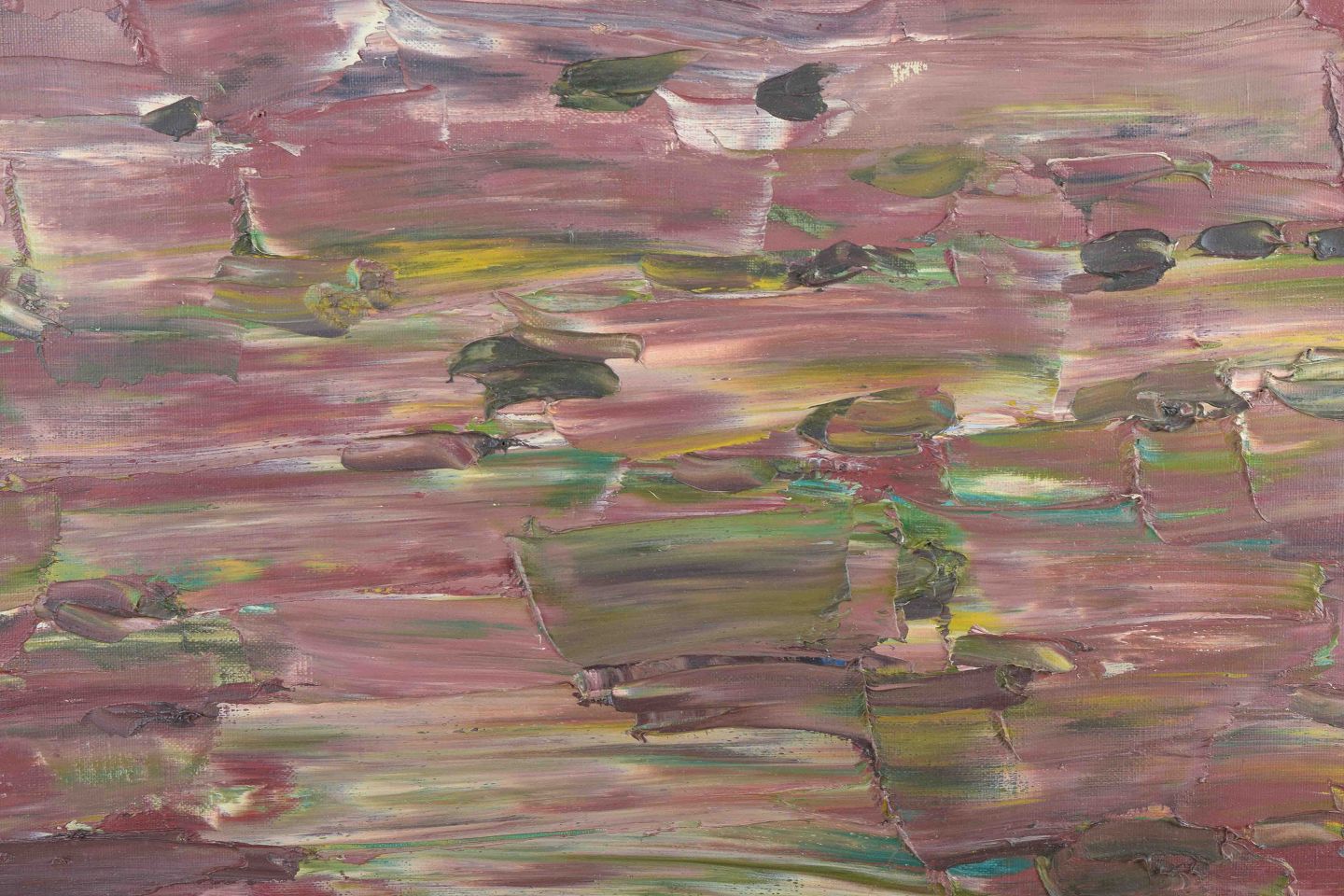 Et ekspressivt landskabsmaleri af den svenske kunstner Sven Erik Markhed. Værket er kendetegnet ved brede, pastose penselstrøg i jordnære røde og brune nuancer, afbrudt af grønne felter og et blåt himmelbånd. Et typisk eksempel på Markheds abstrakte fortolkning af naturen fra 1970’erne–1980’erne.