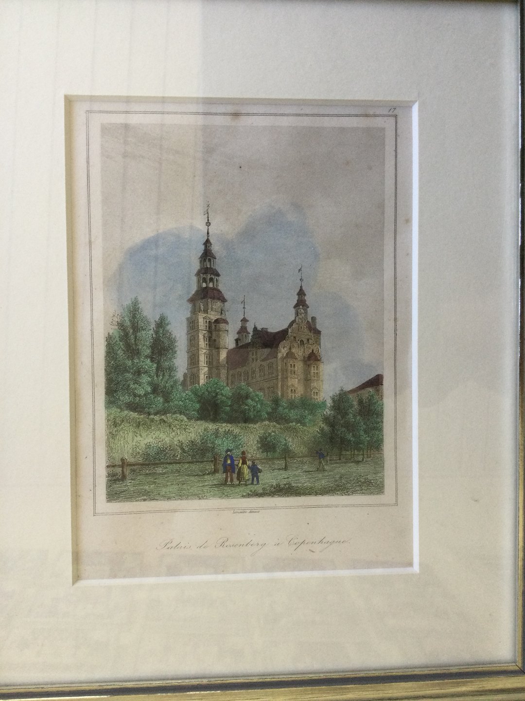Koloreret radering af Augustin-Francois Lemaitre - Rosenborg Slot i København 1846.