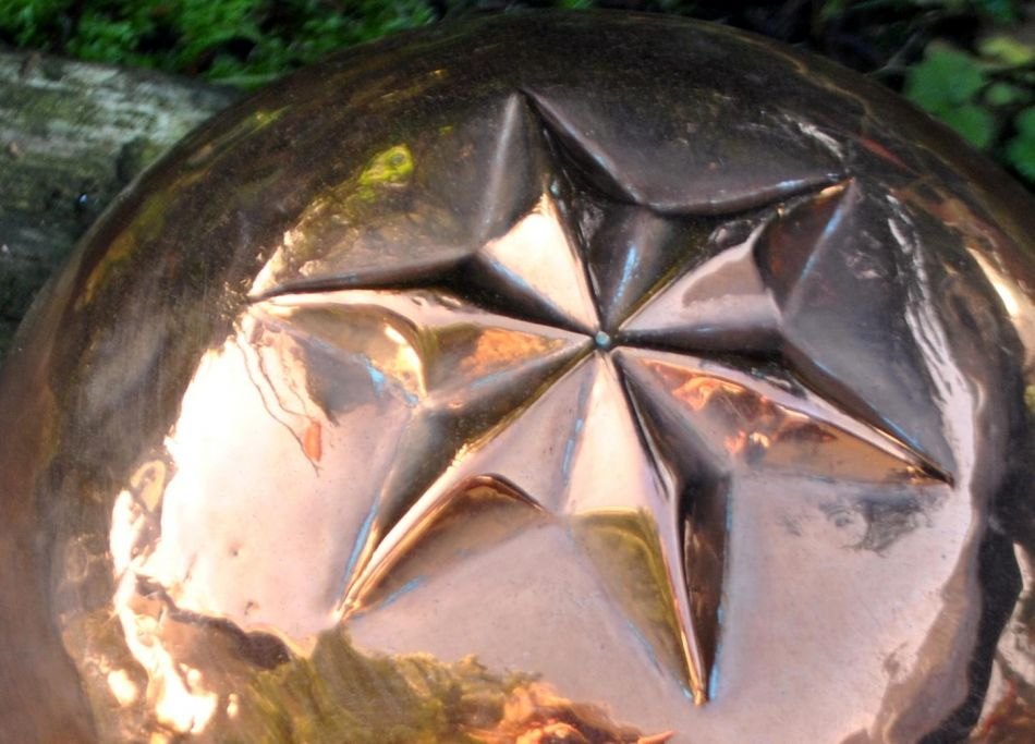 Pateten- oder Fleischgericht, Kupfer, 19. Jahrhundert. Dänemark. Mit zwei Henkeln und sternförmiger Verzierung. Durchmesser: 21,5 cm. Durchmesser inkl. Henkel: 37,5 cm. H: 14 cm. Keine sichtbaren Stempel.