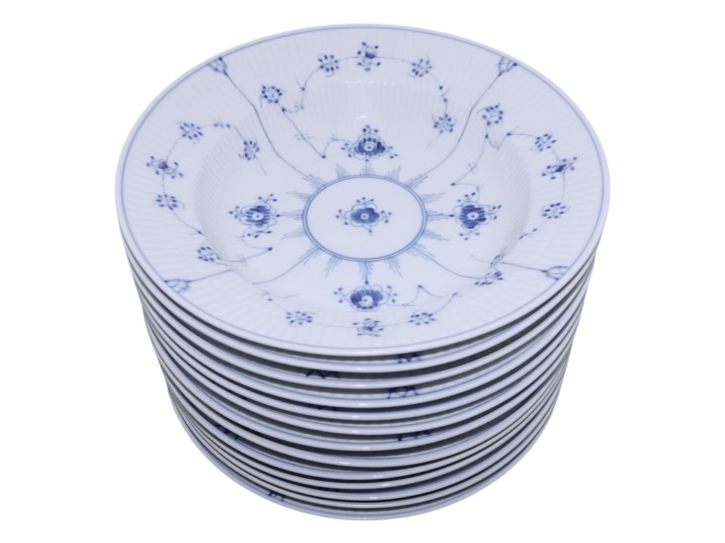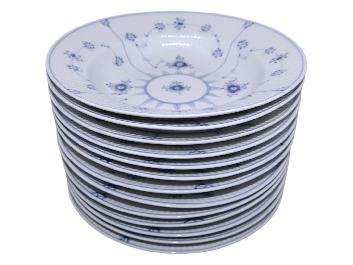 Text zugänglich auf Dänische: Royal Copenhagen Musselmalet Riflet, dyb tallerken.