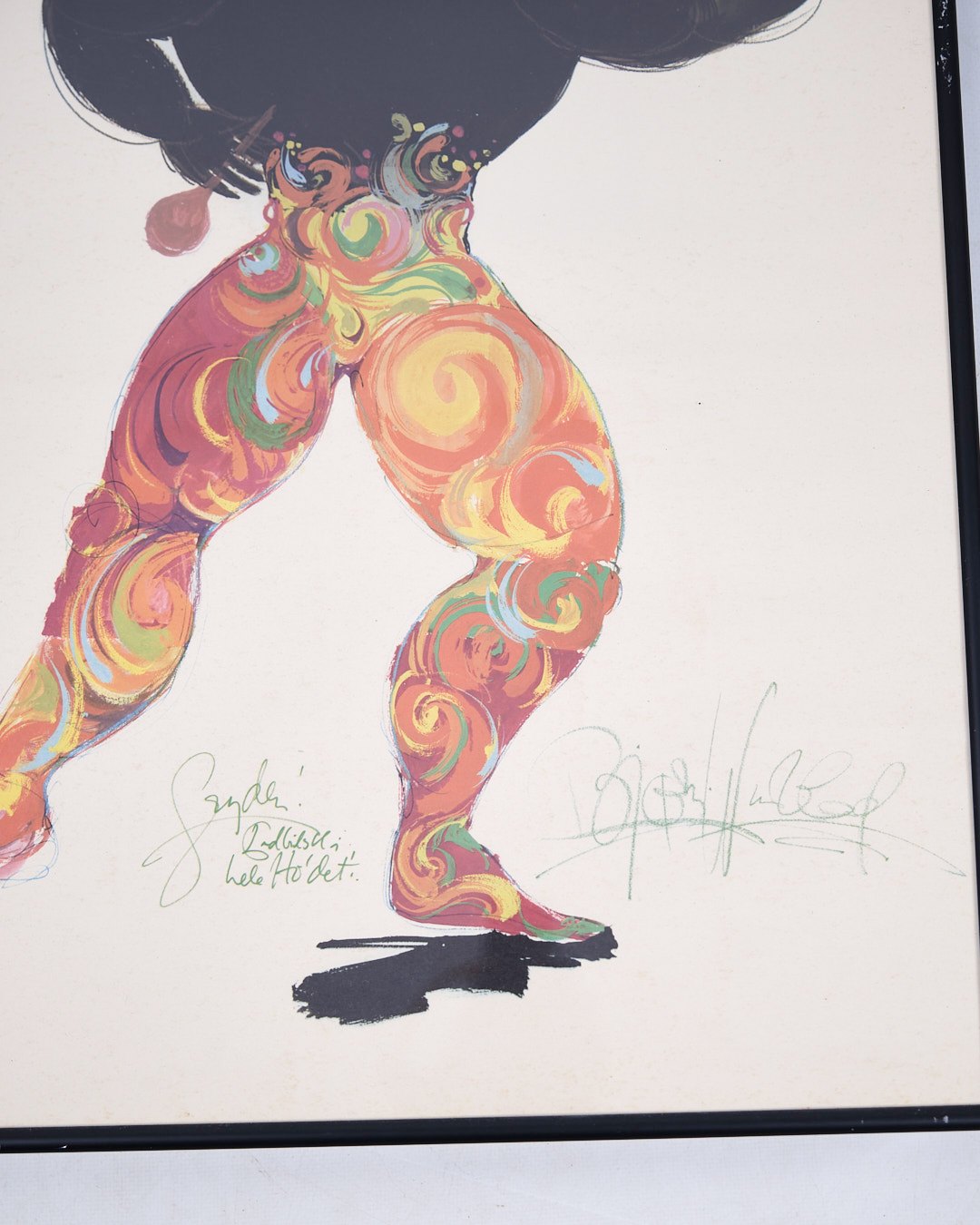 Litografisk tryk signeret af Bjørn Wiinblad. Indrammet i sort ramme med kunstnerens karakteristiske motiv.