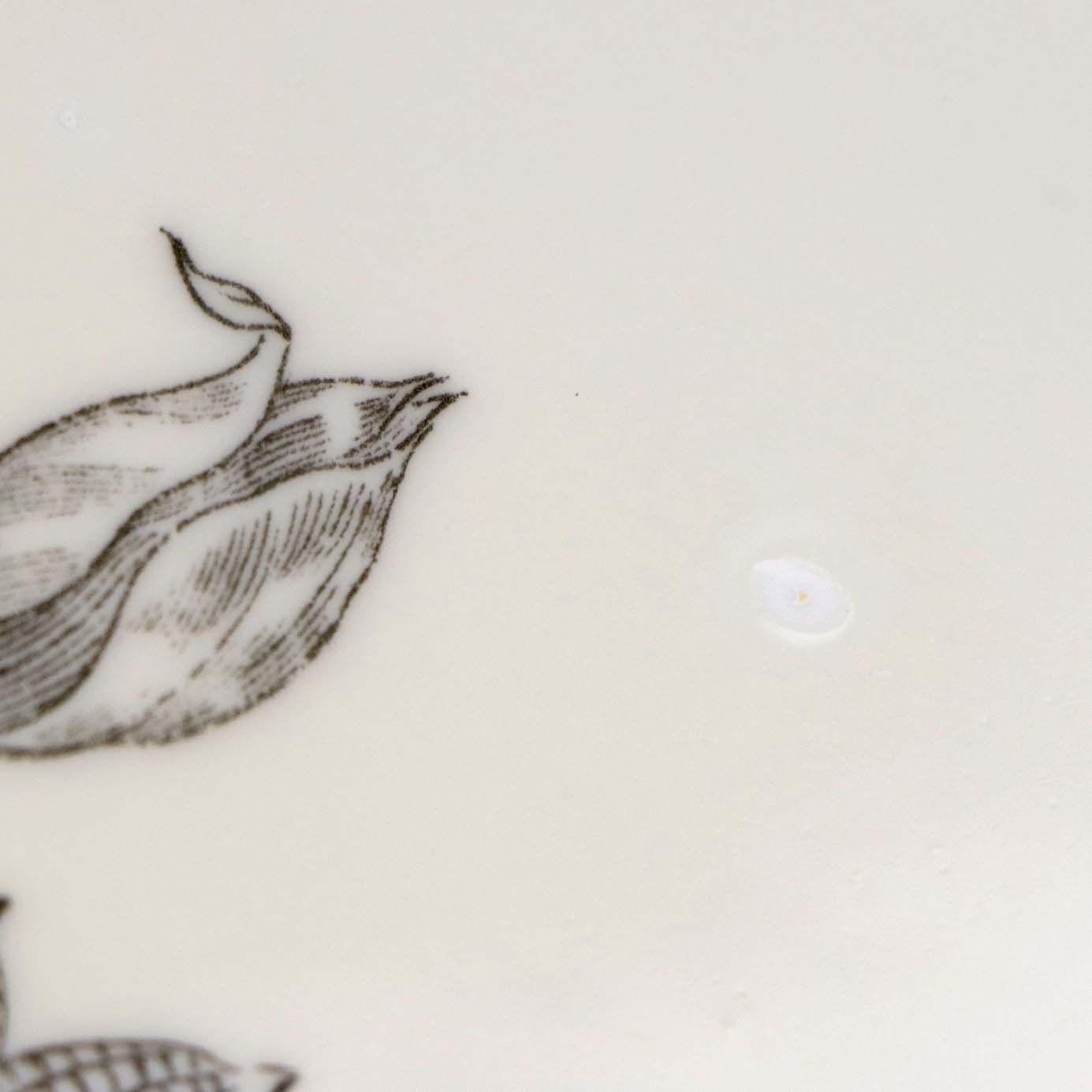 Fremstår med ujævnheder i porcelænet i bunden af fadet.