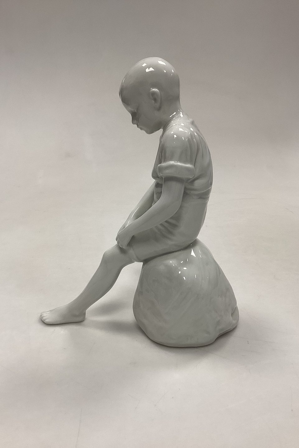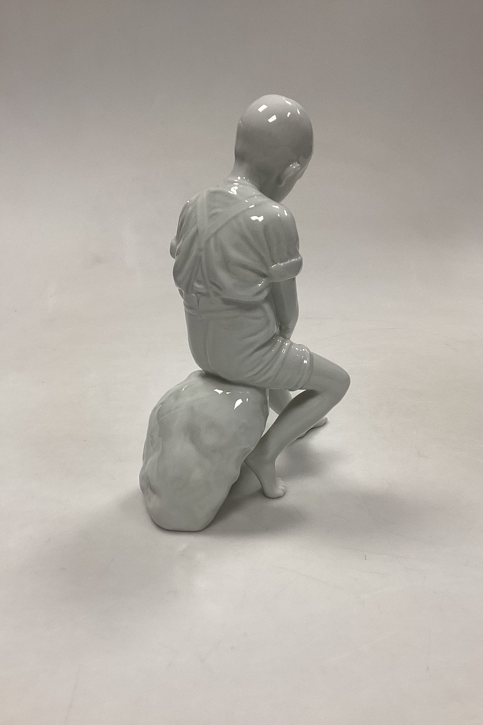 Royal Copenhagen Blanc de Chine Figur - Dreng på Sten No. 520