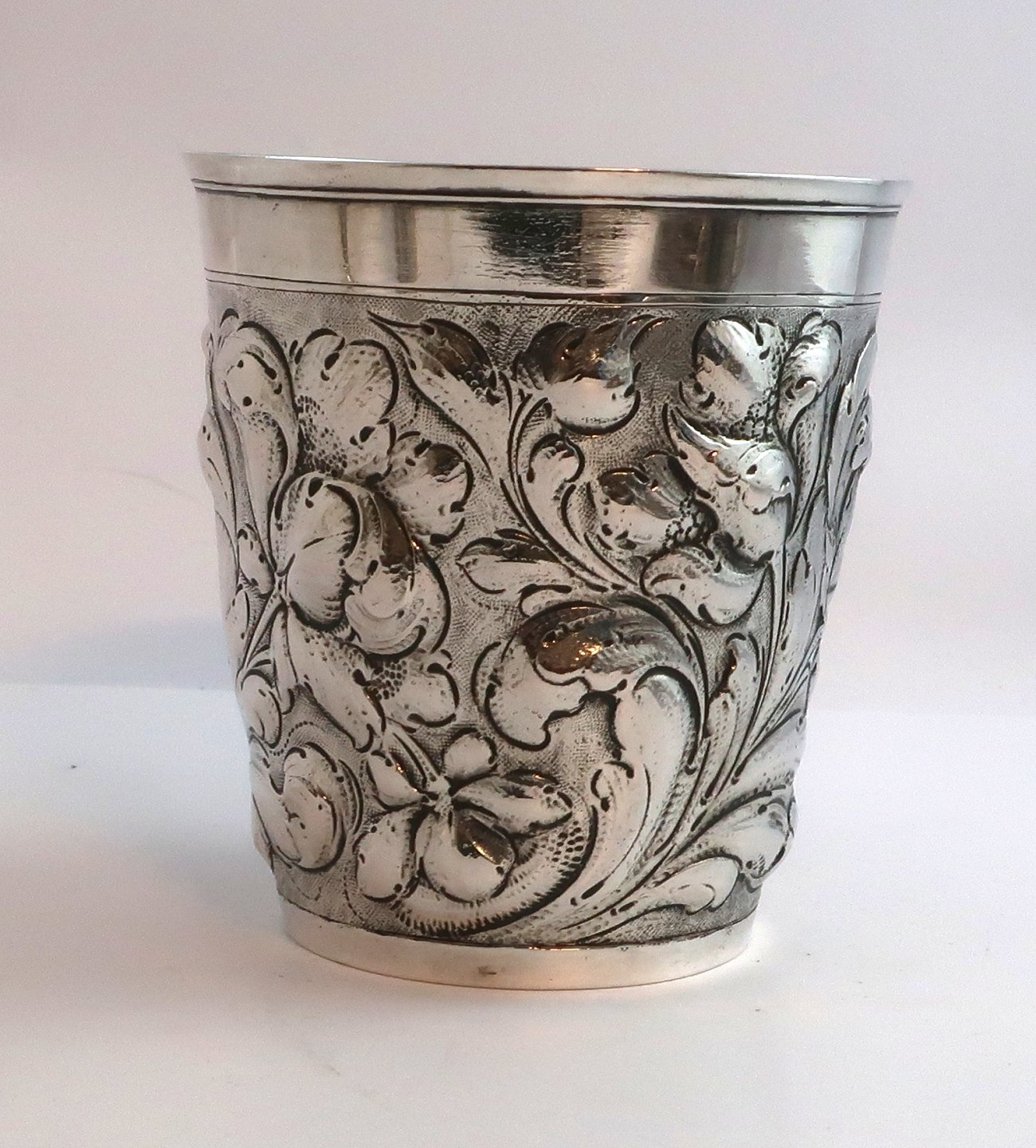Jürgen Friis, Randers (1739-1790). Großer silberner Becher. Höhe 11 cm. Durchmesser 10 cm.