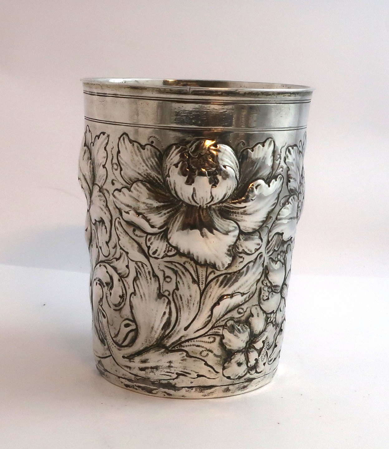 Deutschland, Augsburg. Großer Silberbecher. Höhe 11,5 cm. Durchmesser 9 cm.