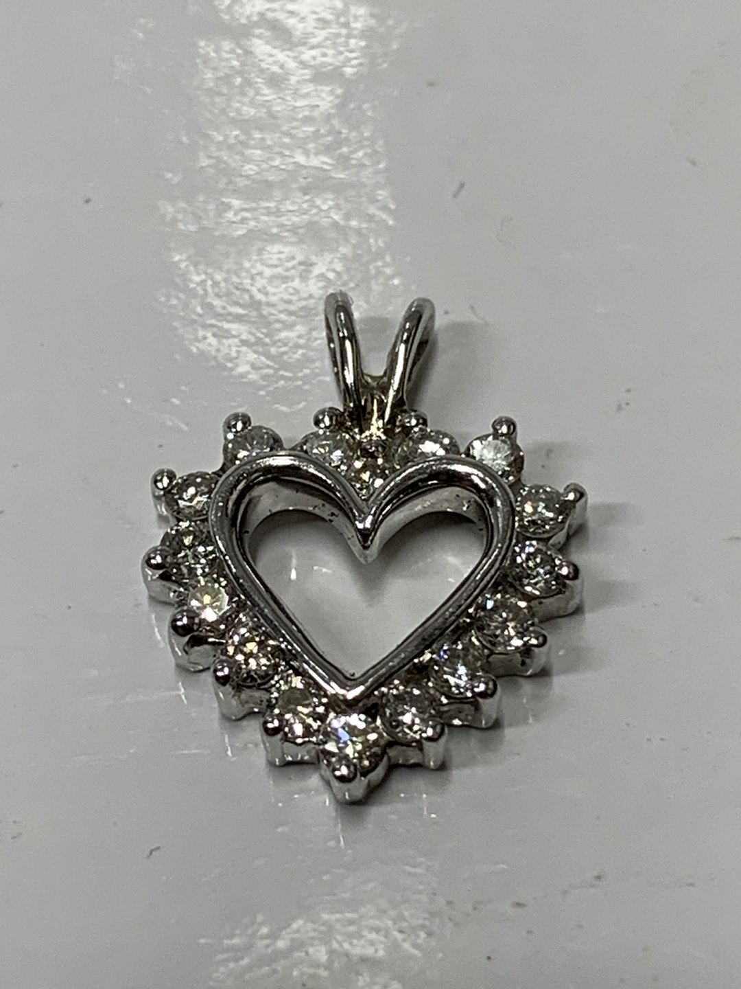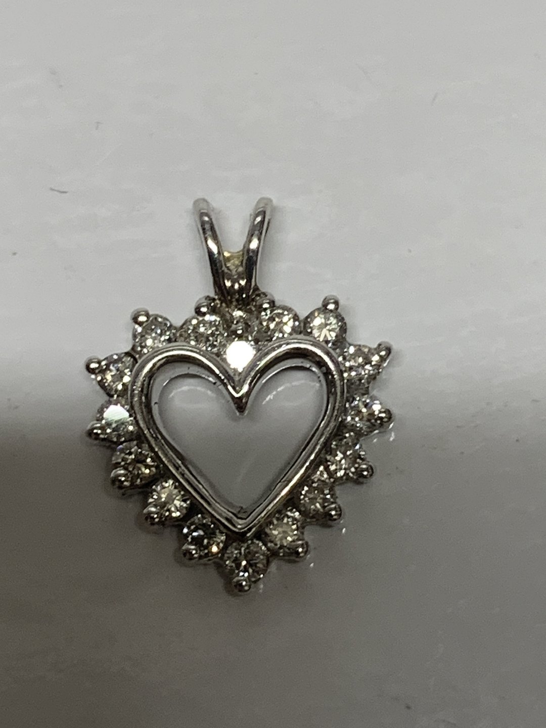 Vedhæng 14 karat hvidguld, udformet som et, Hjerte med indlagte Diamanter